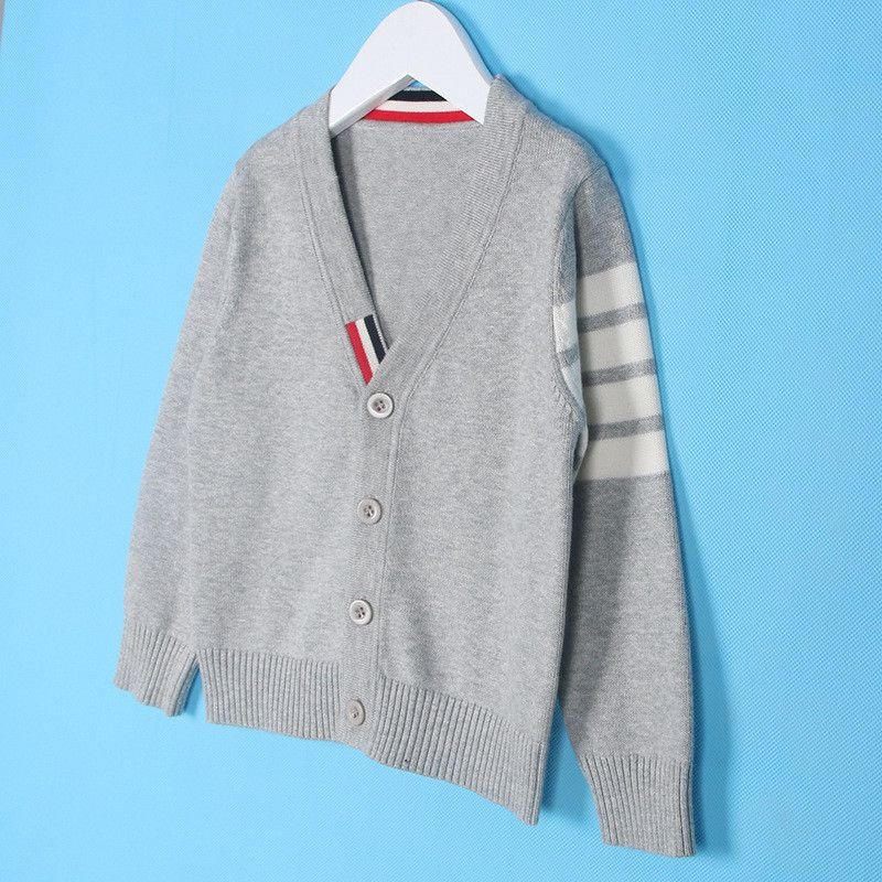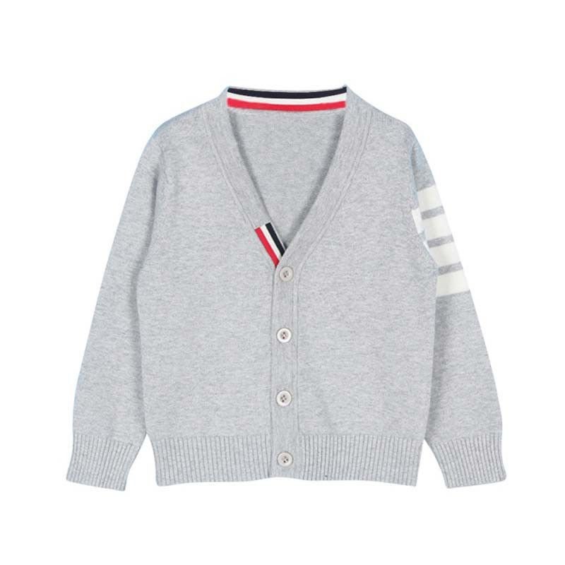 1-6Y Baby Kid Stripes Print Button Design Knitted Outerwear