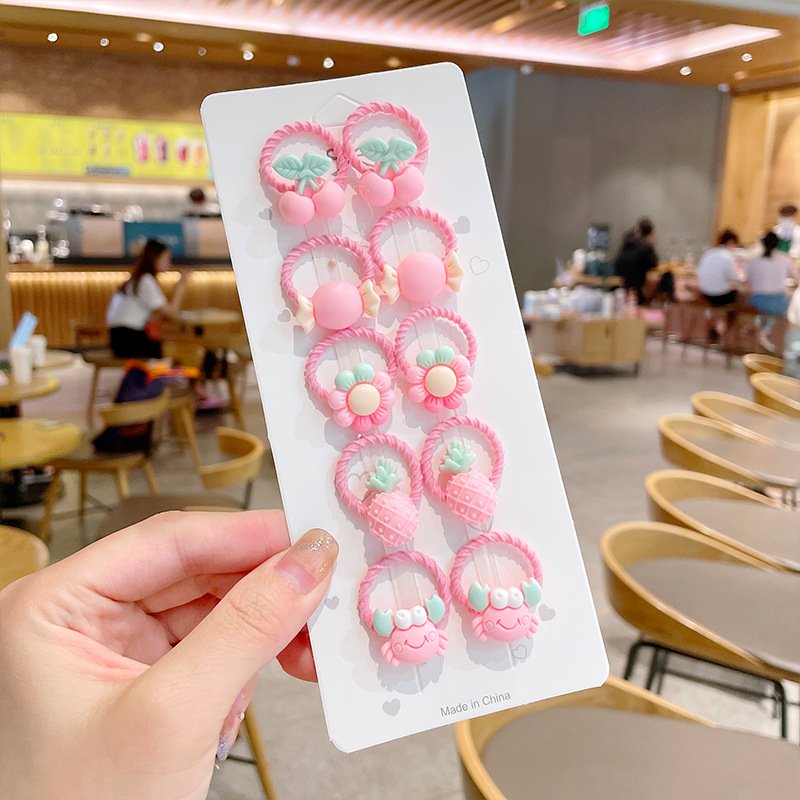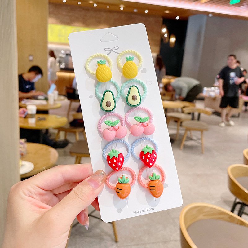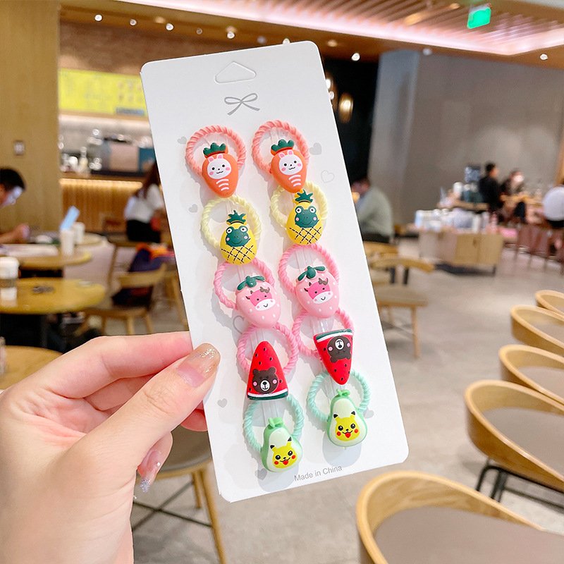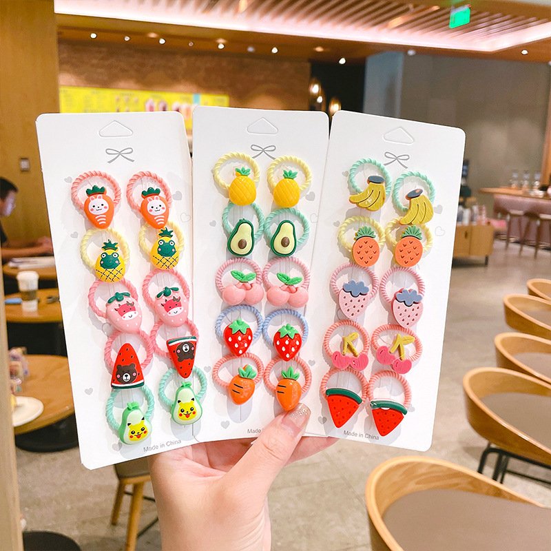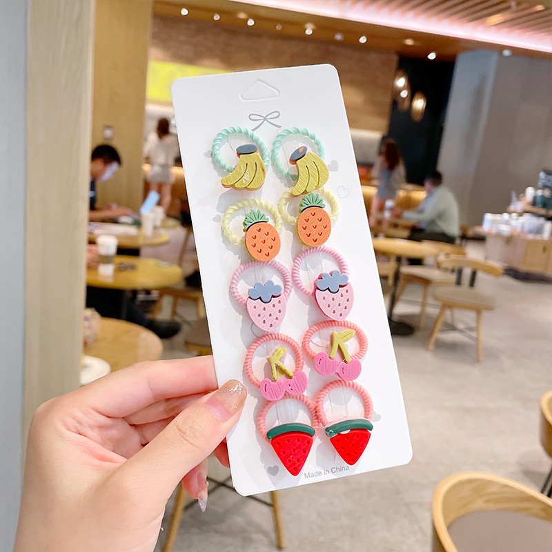10pcs/set Girls Cute Cartoon Fruit Mini Elastic Hair Band