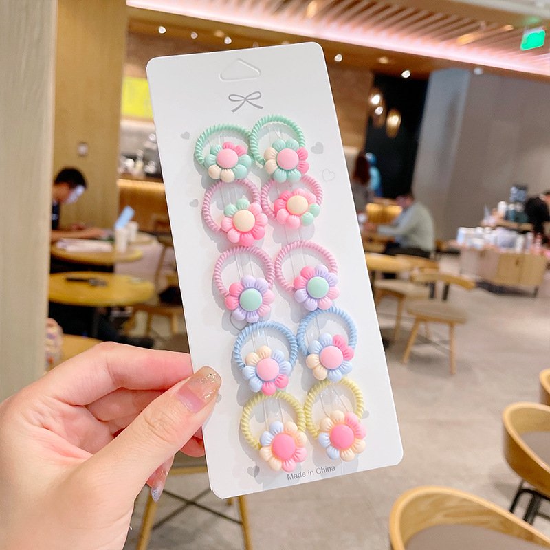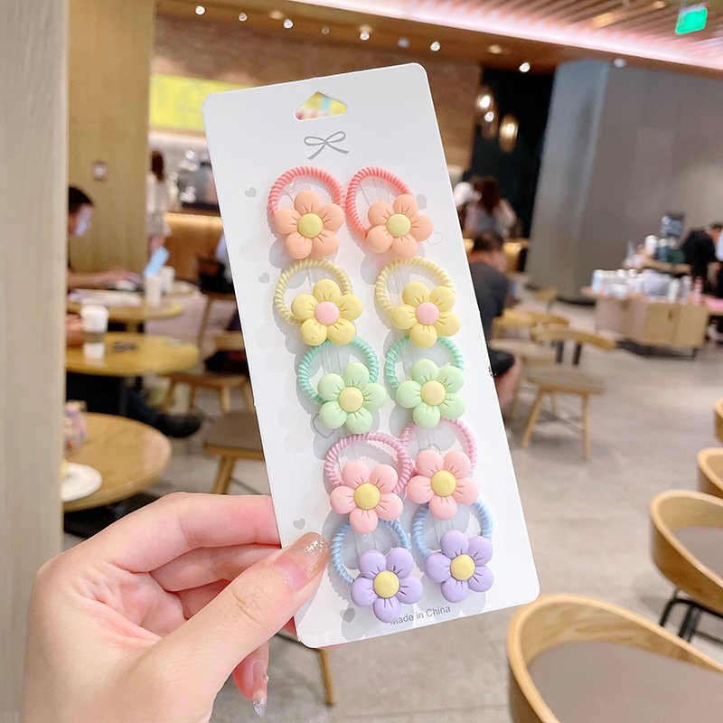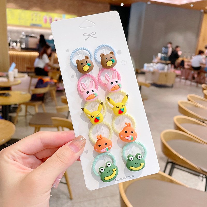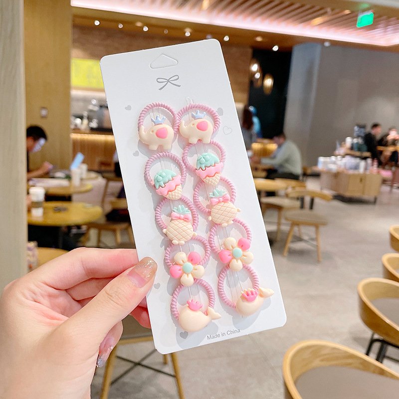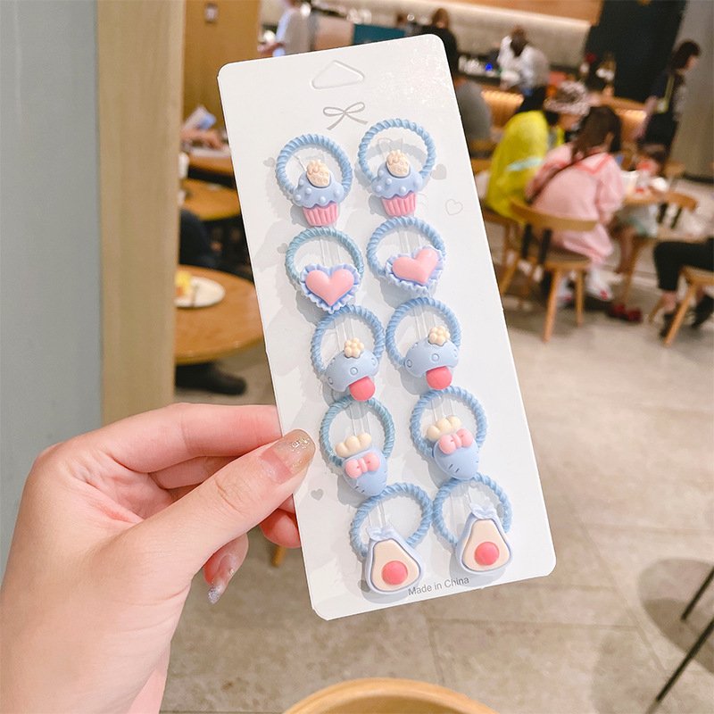 10pcs/set Girls Cute Cartoon Fruit Mini Elastic Hair Band