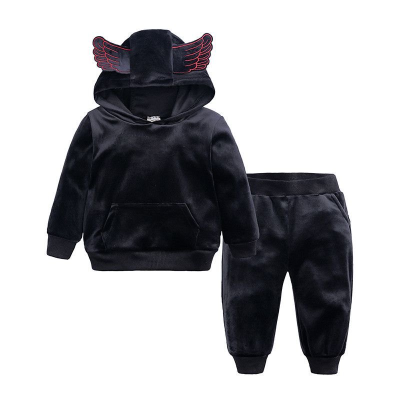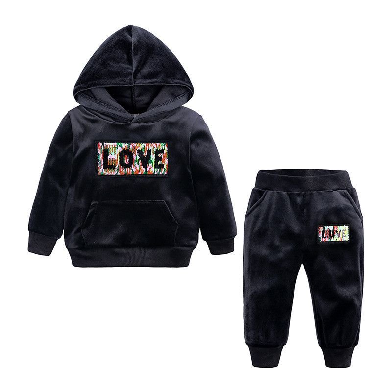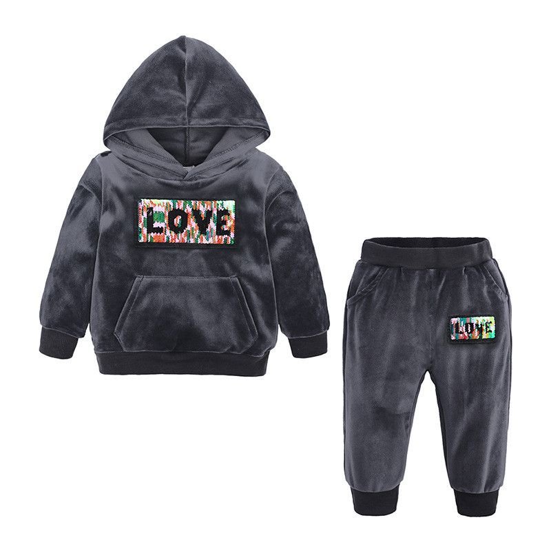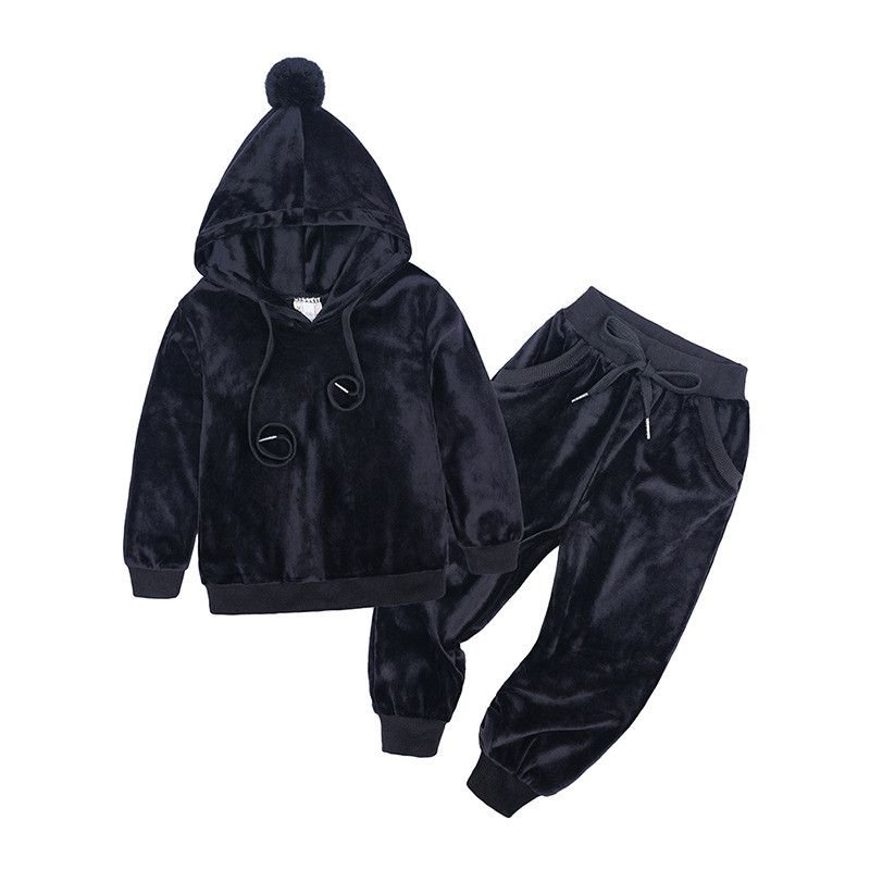 2 Pcs Boy Girl Pleuche Hoodies And Pants Casual Sports Clothing Set