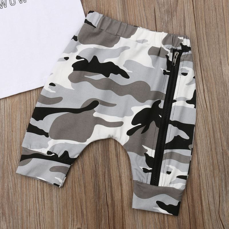 2 Pcs Boy Letter Print Short Sleeve Tee And Camouflage Print Pants Set