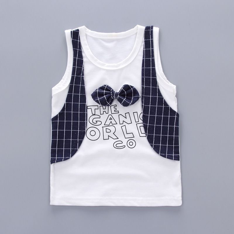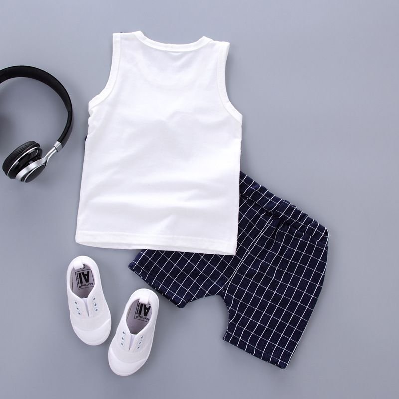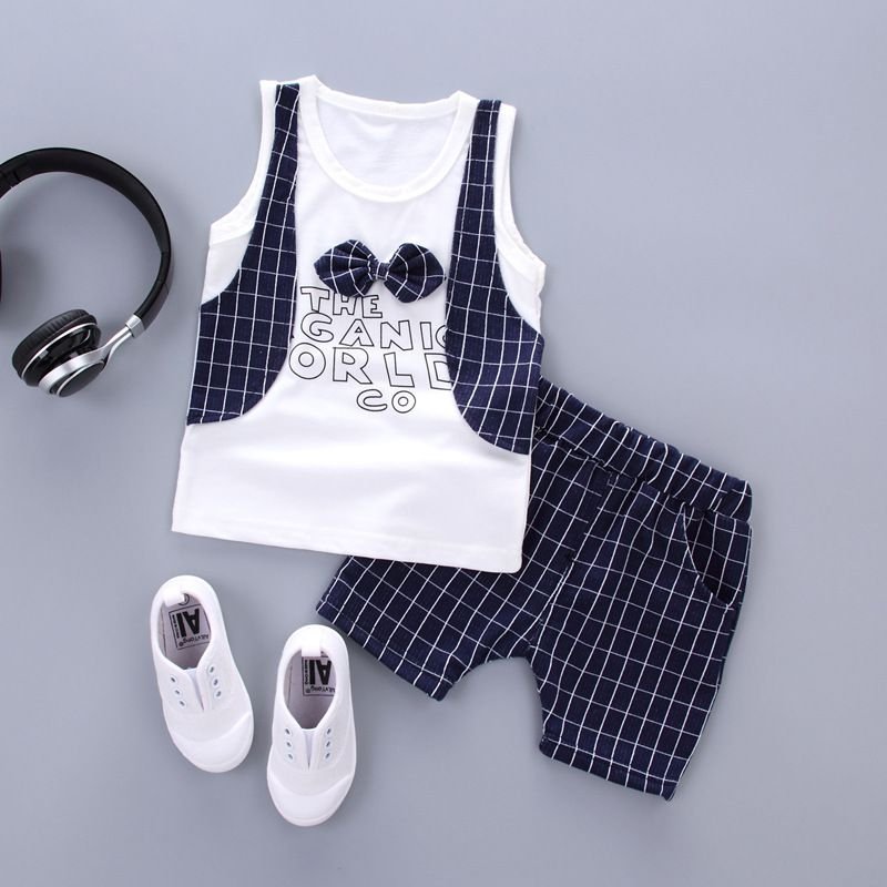 2 Pcs Boys Cotton Patchwork Tees And Line Print Shorts