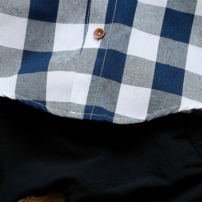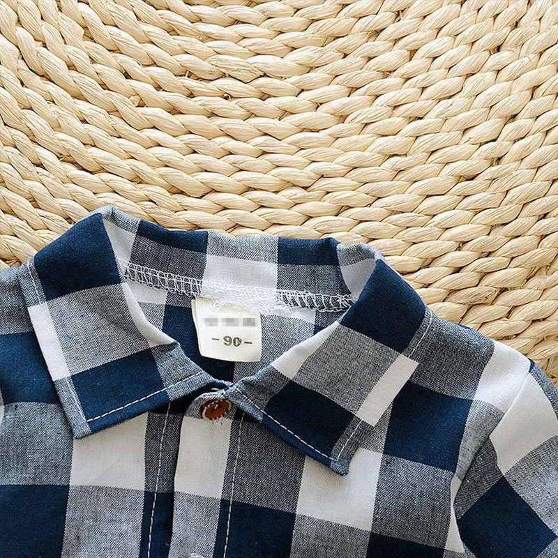2 Pcs Boys Cotton Plaid Print Shirts And Shorts Casual Set
