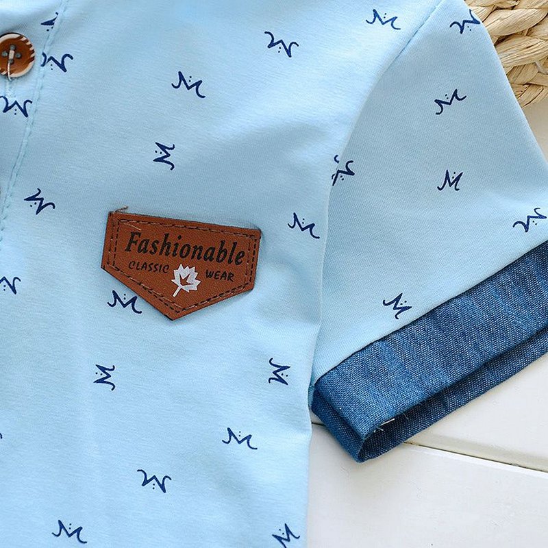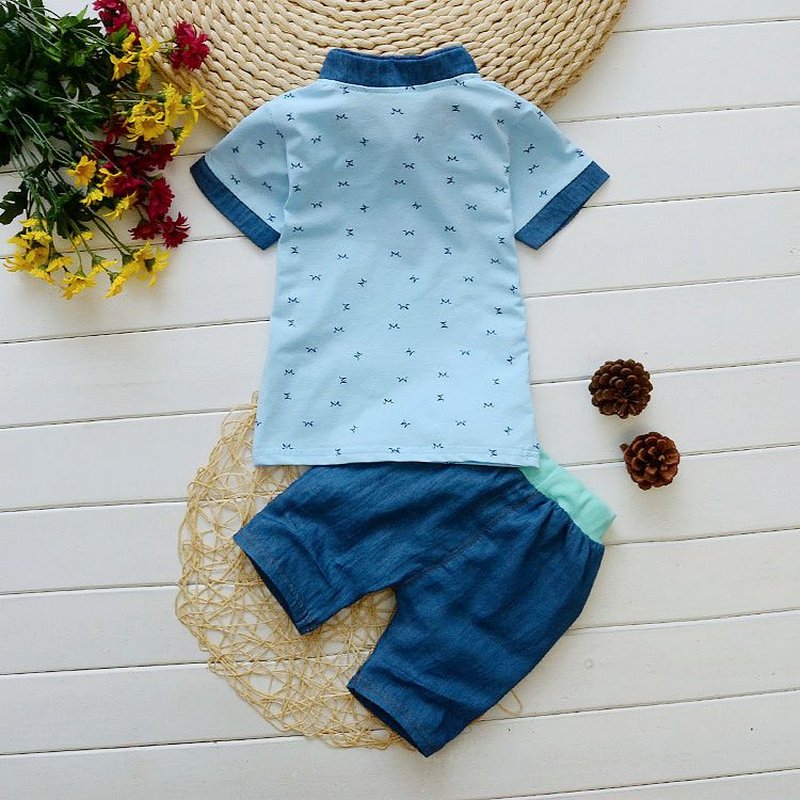 2 Pcs Boys Print Standing Collar Tees And Shorts