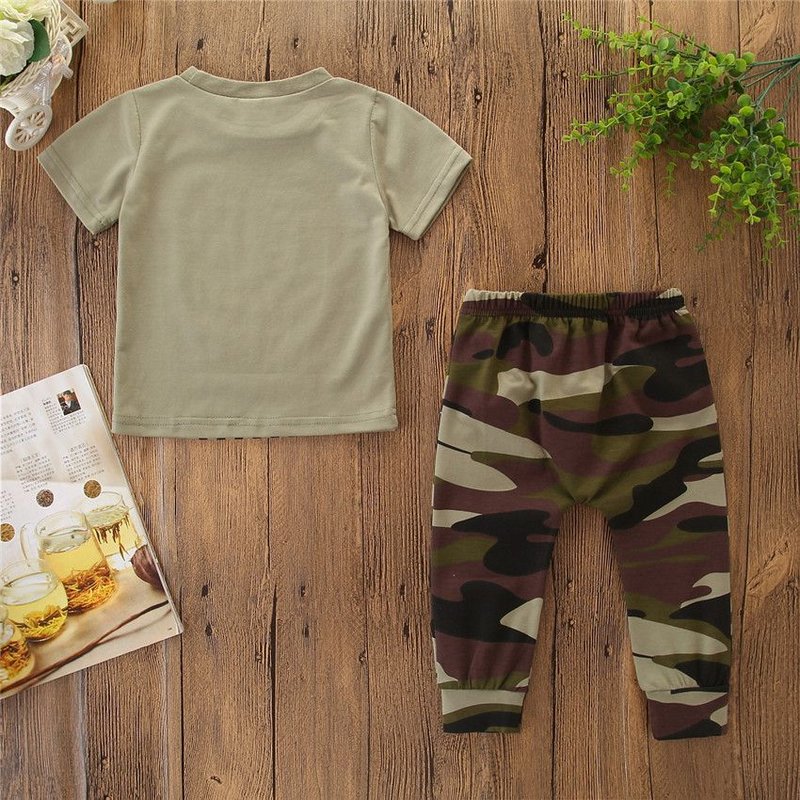 2 Pcs Boys Short Sleeves Tops And Camouflage Print Pants