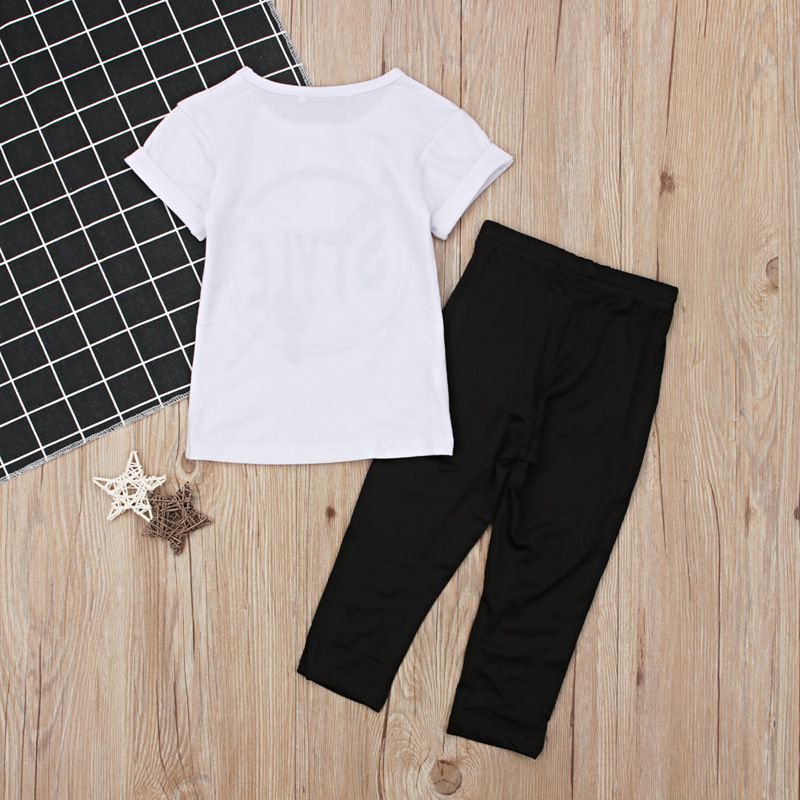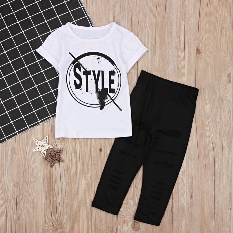 2 Pcs Casual Set Kid Child Girl Short Sleeves Tees And Ripped Pants