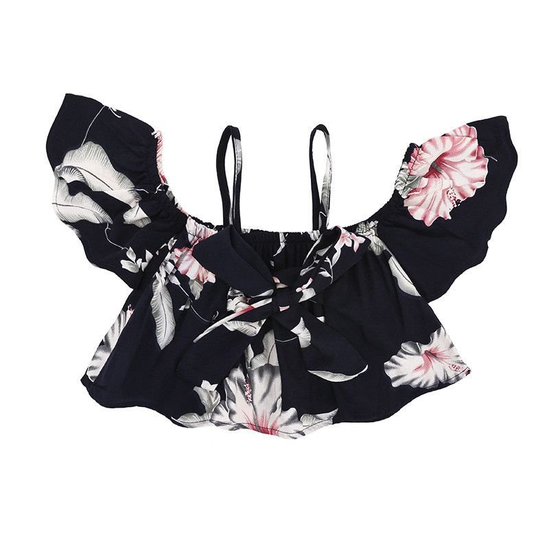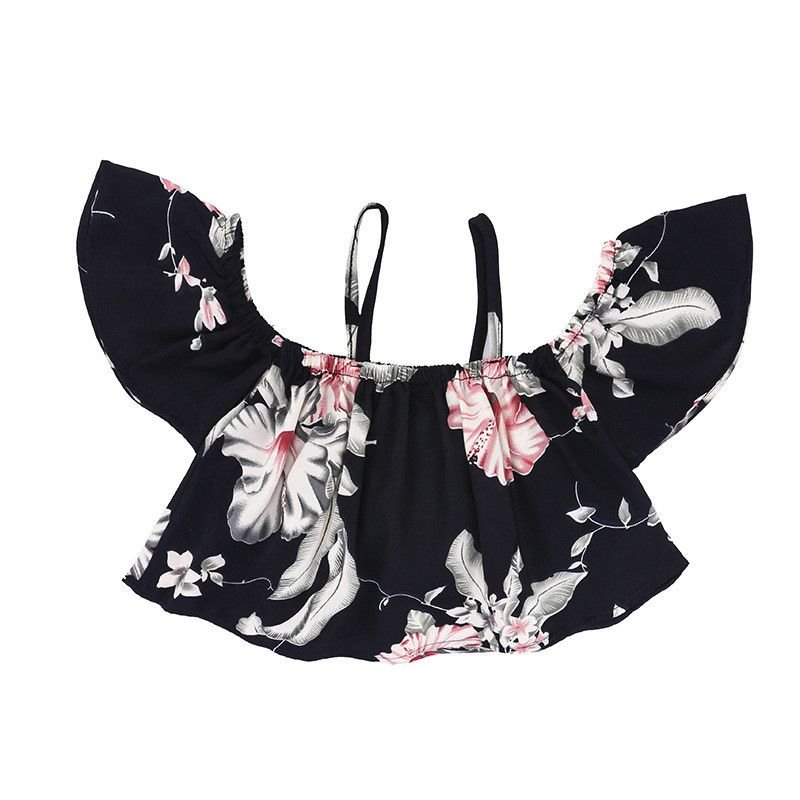 2 Pcs Cute Girl Floral Print Tops And Pink Skirts Set