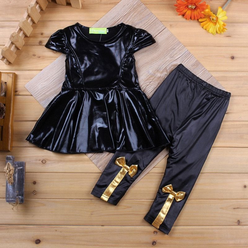 2 Pcs Fashion Girl Patchwork Solid Color Tops And Pants Set