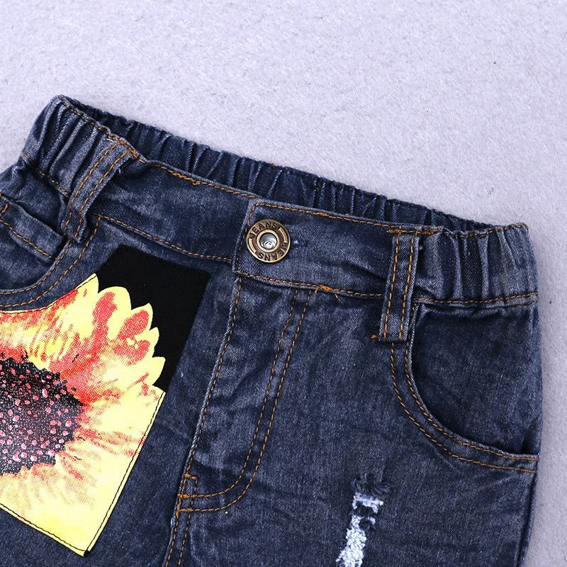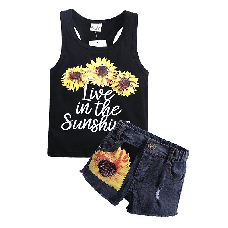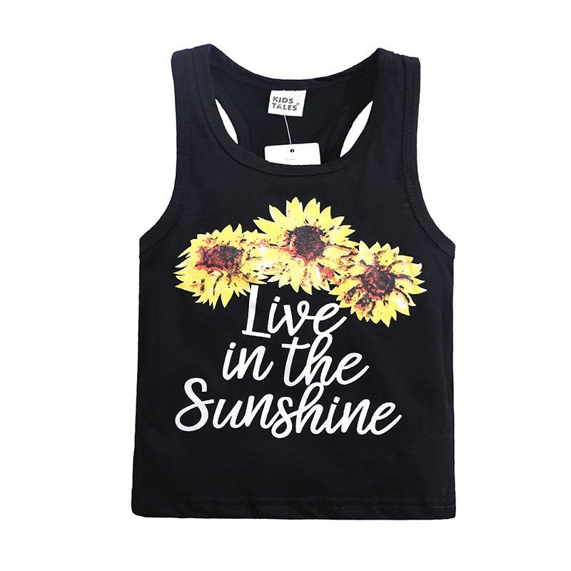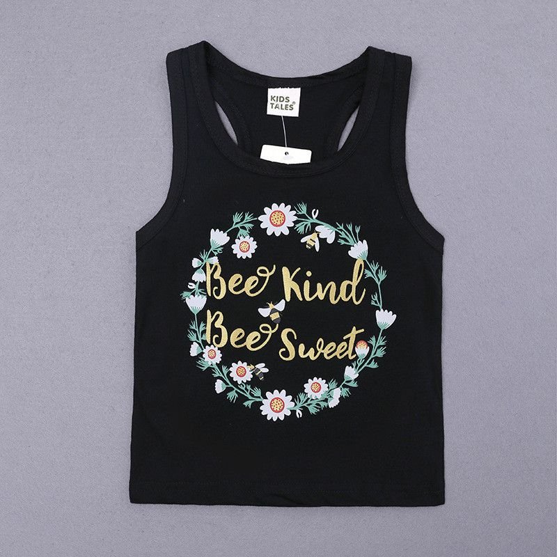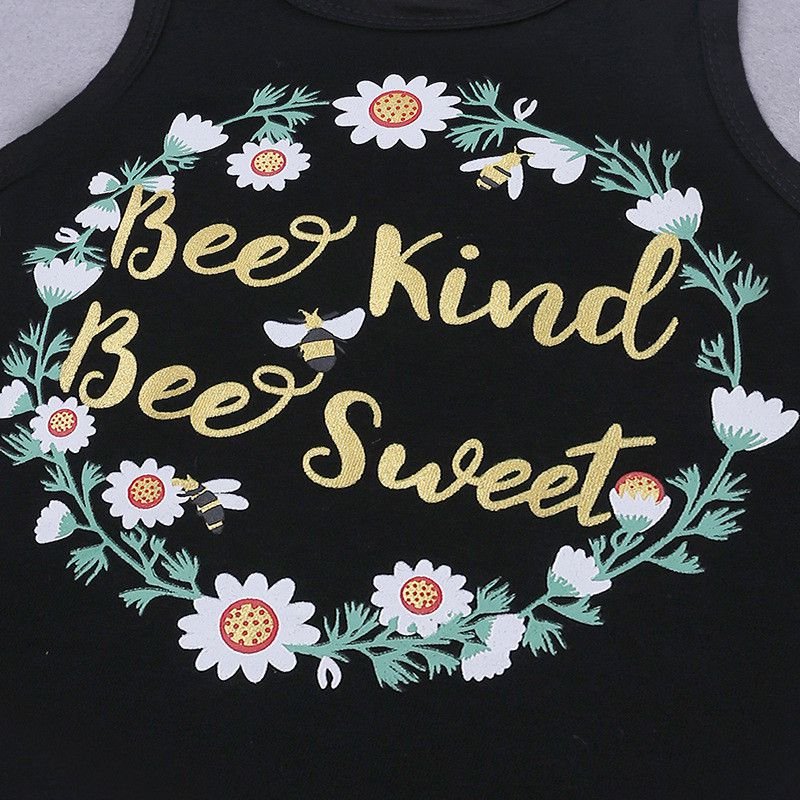 2 Pcs Girl Fresh Floral Letter Print Vests And Shorts Set