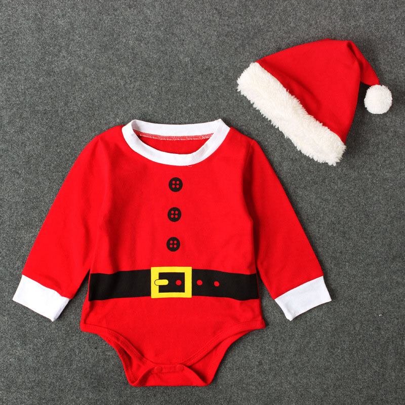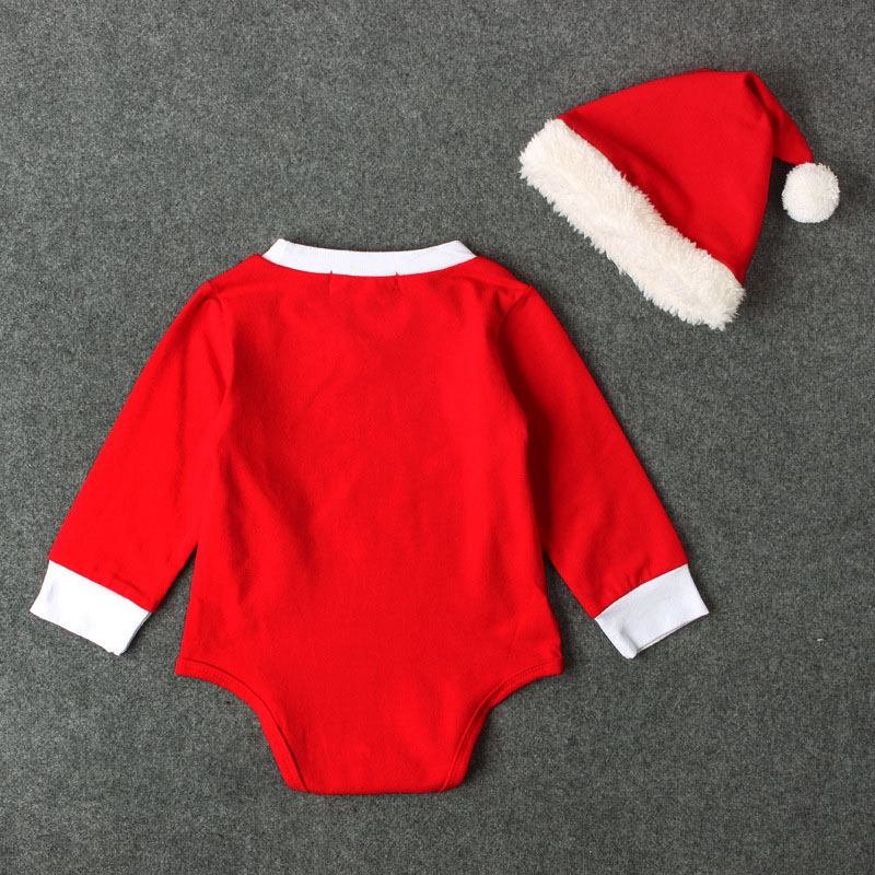 2 Pcs Set Christmas Babies Santa Claus Pattern Long Sleeves Bodysuit And Hat