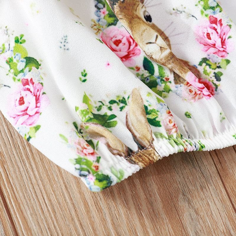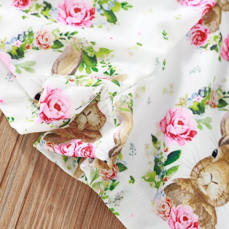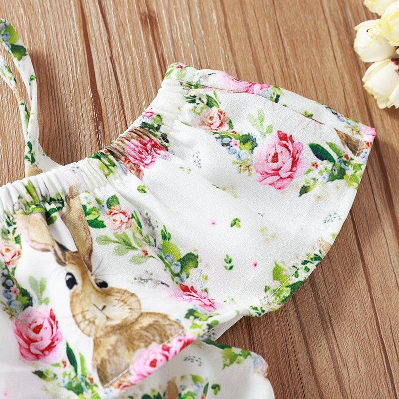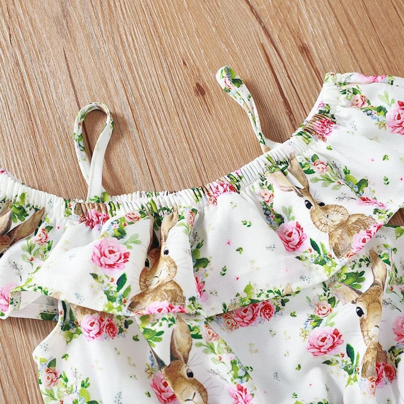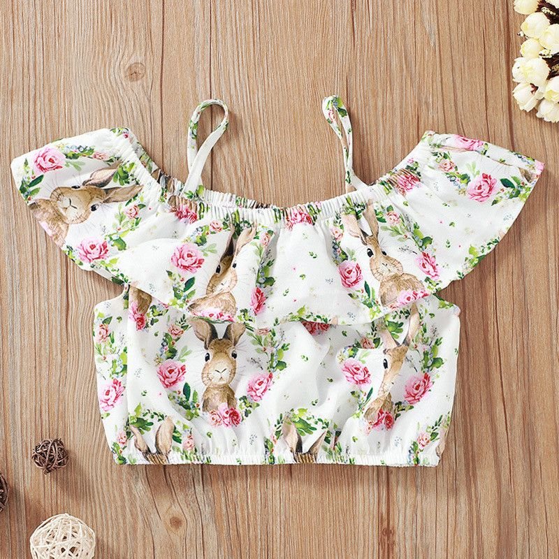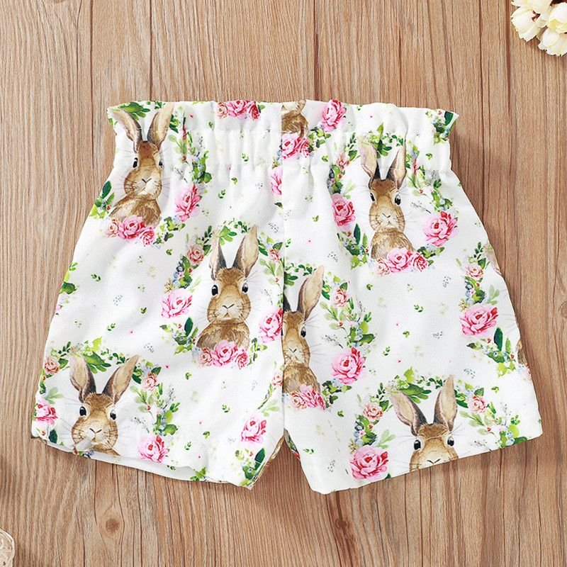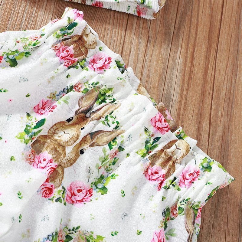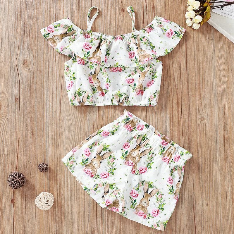 2 Pcs Set Girl Flower Rabbit Print Tops And Shorts