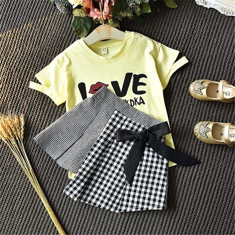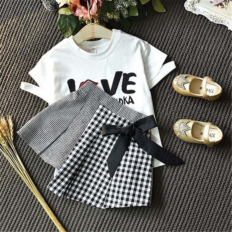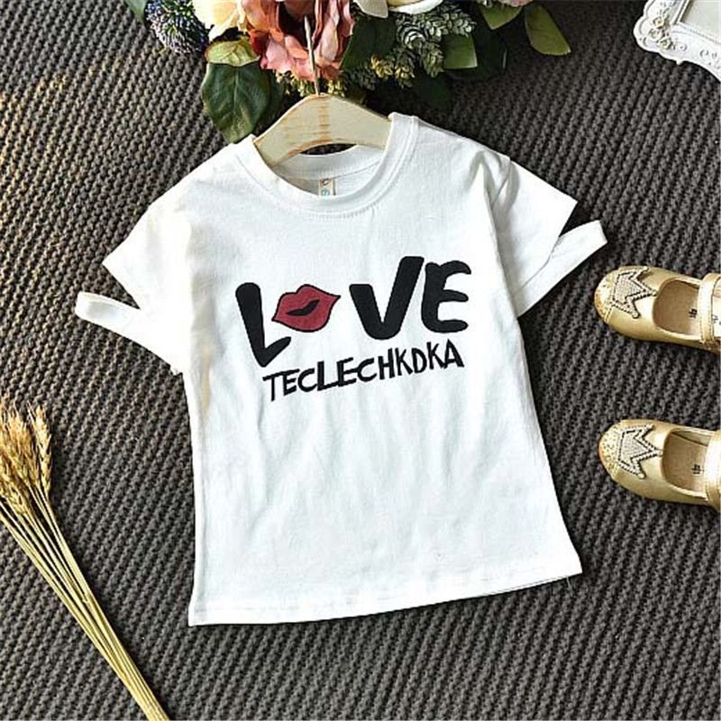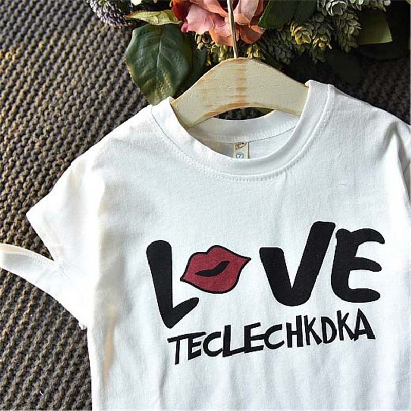 2 Pcs Set Girl Kid Letter Print White Tees And Shirts