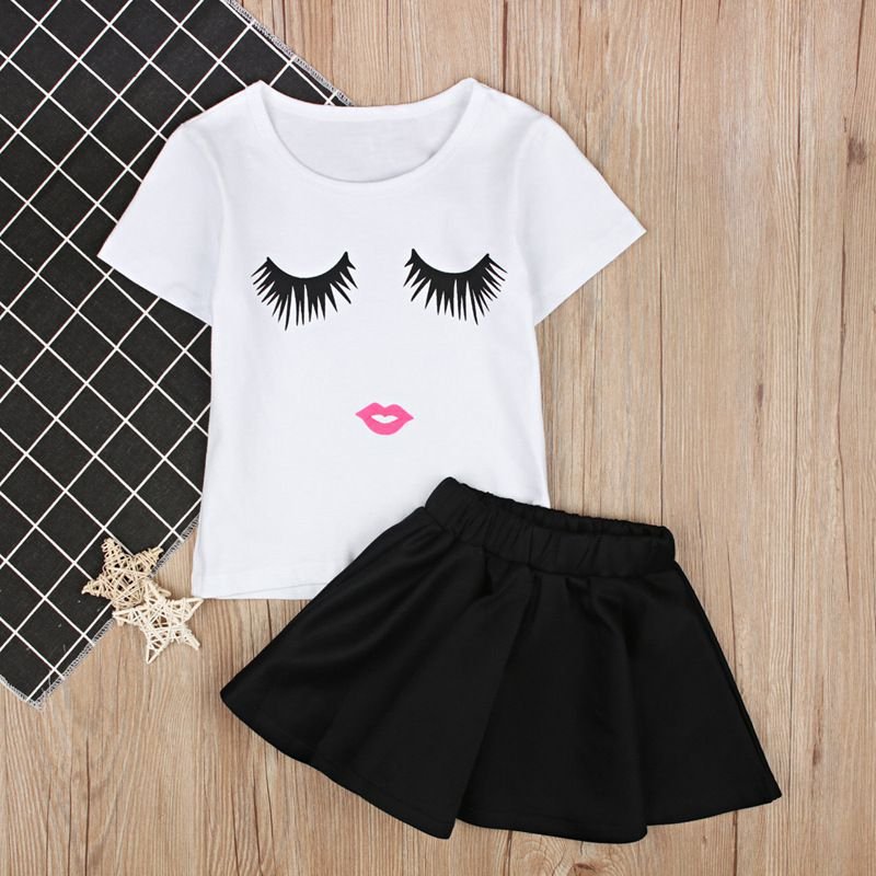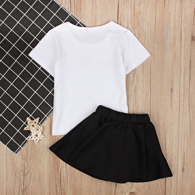 2 Pcs Set Girl White T-Shirts And Black Skirts
