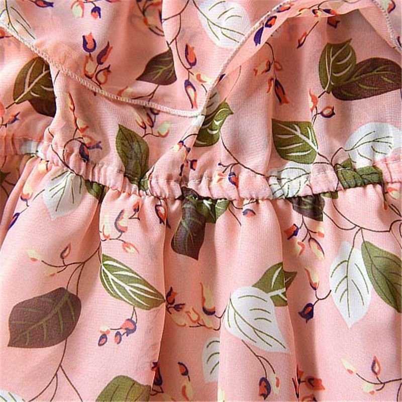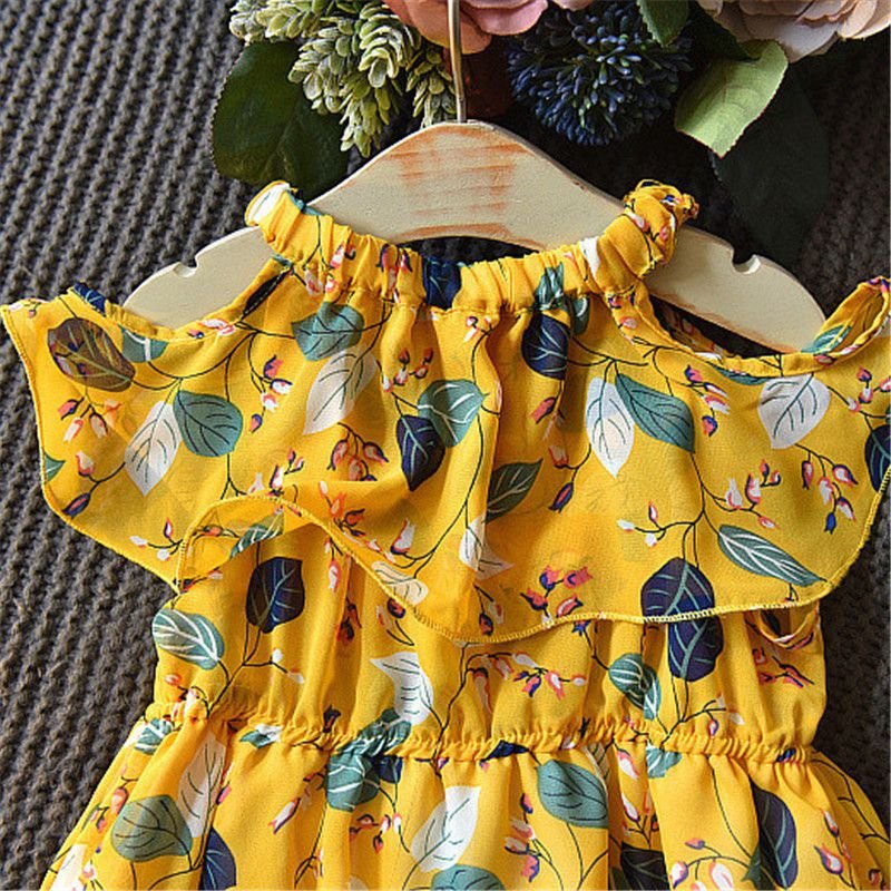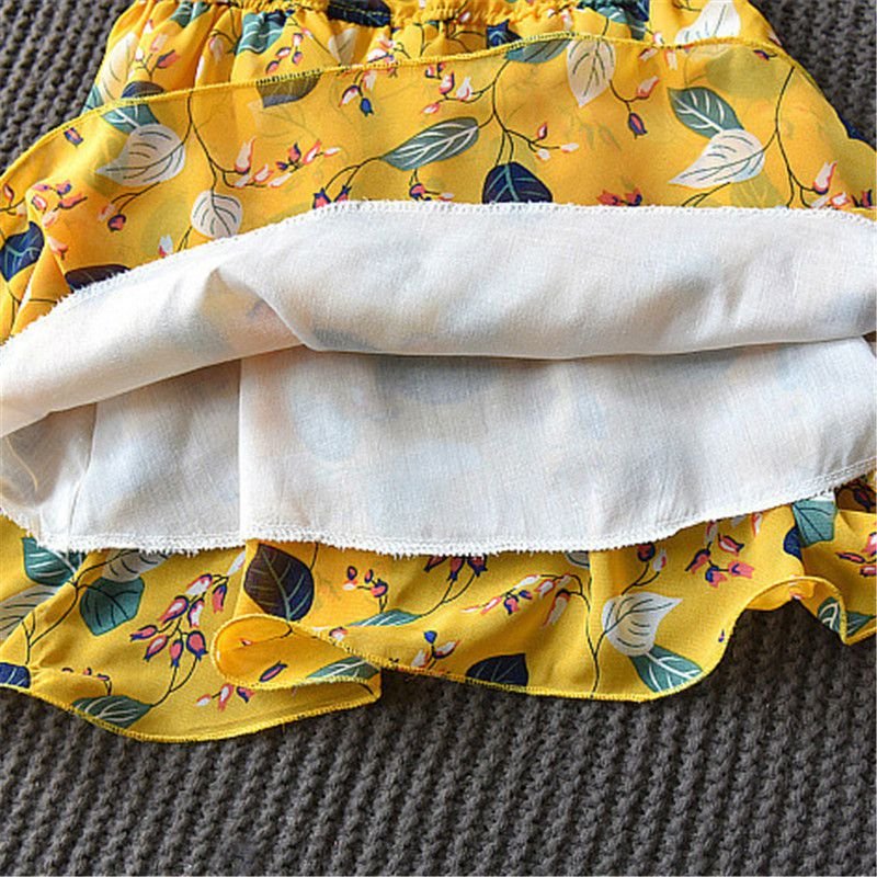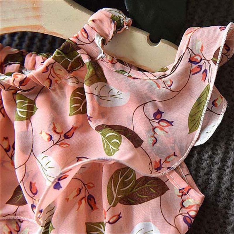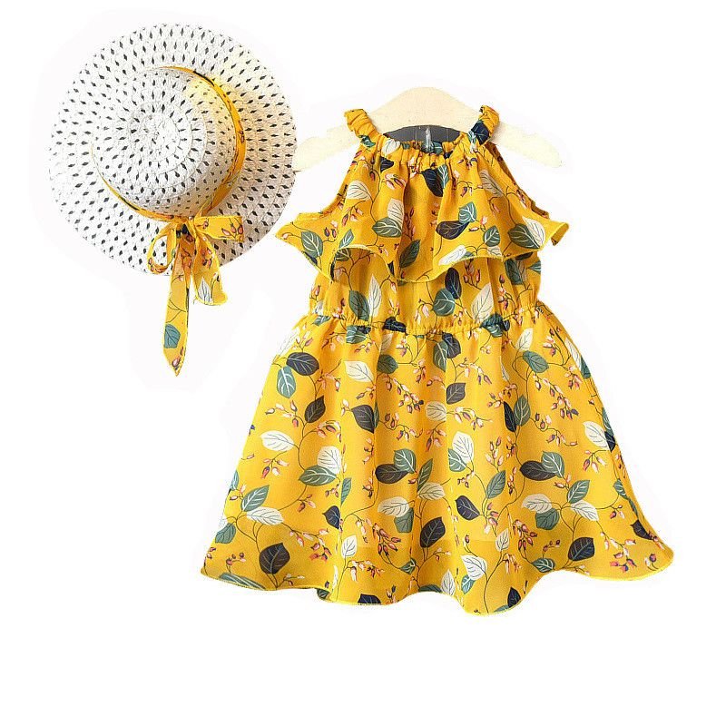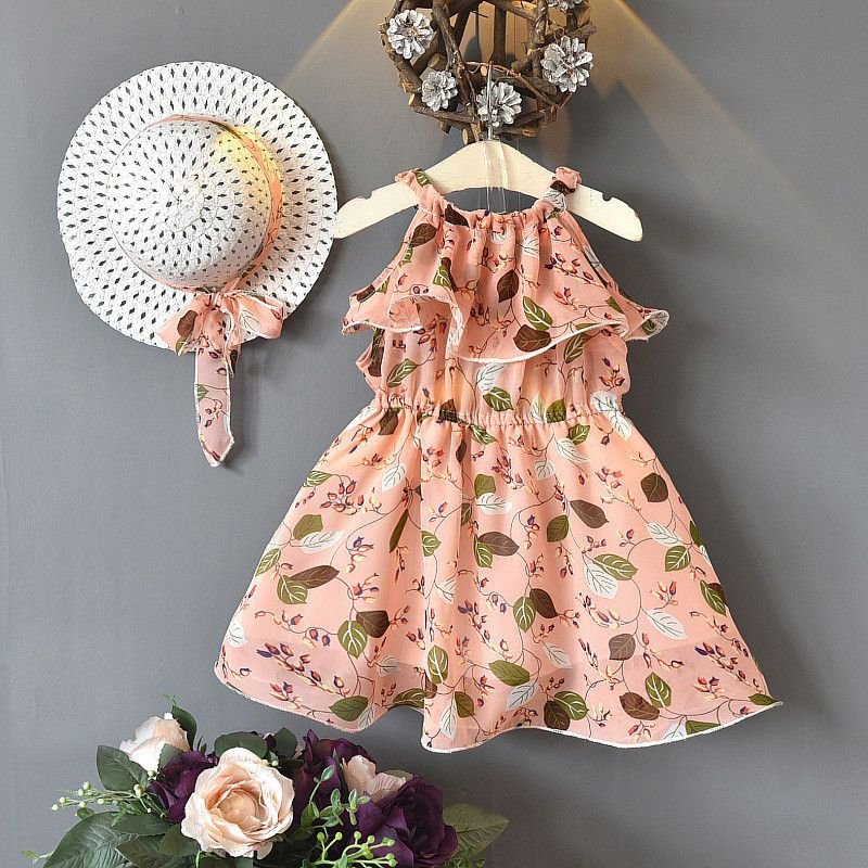 2 Pcs Sweet Girl Floral Print Ruffle Design Dress With Hat
