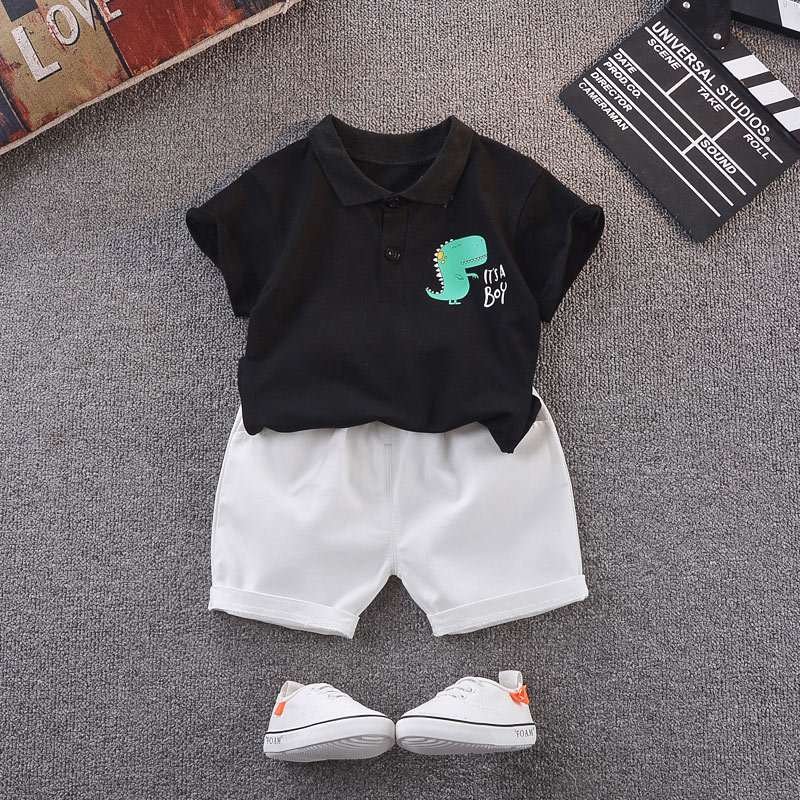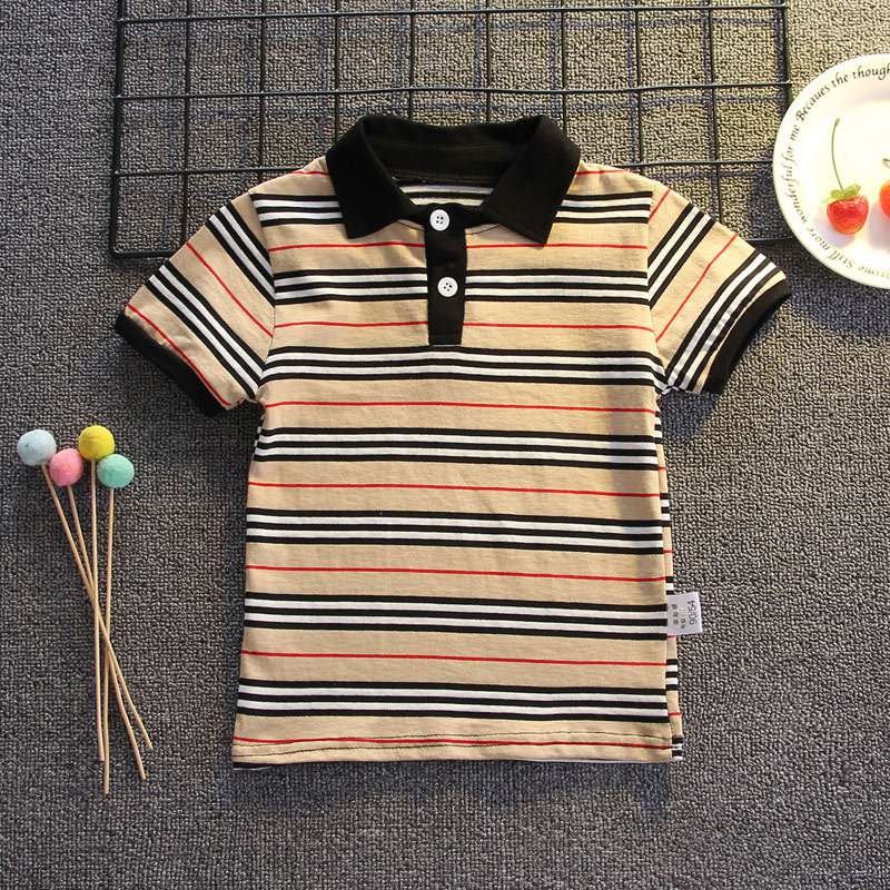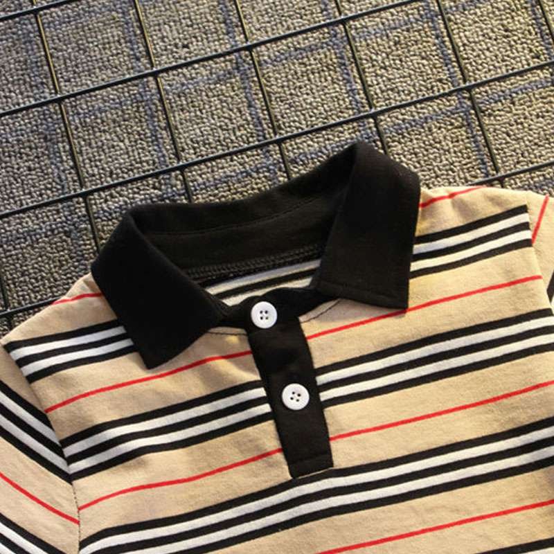 2pcs/set Boys Casual Stripe Lapel Short Sleeve Set