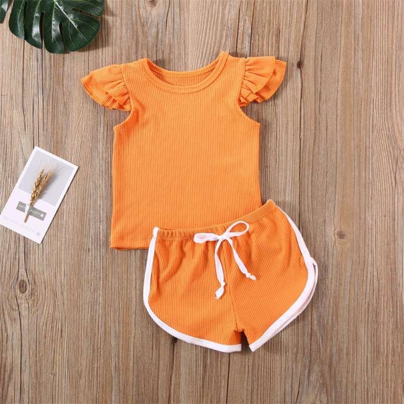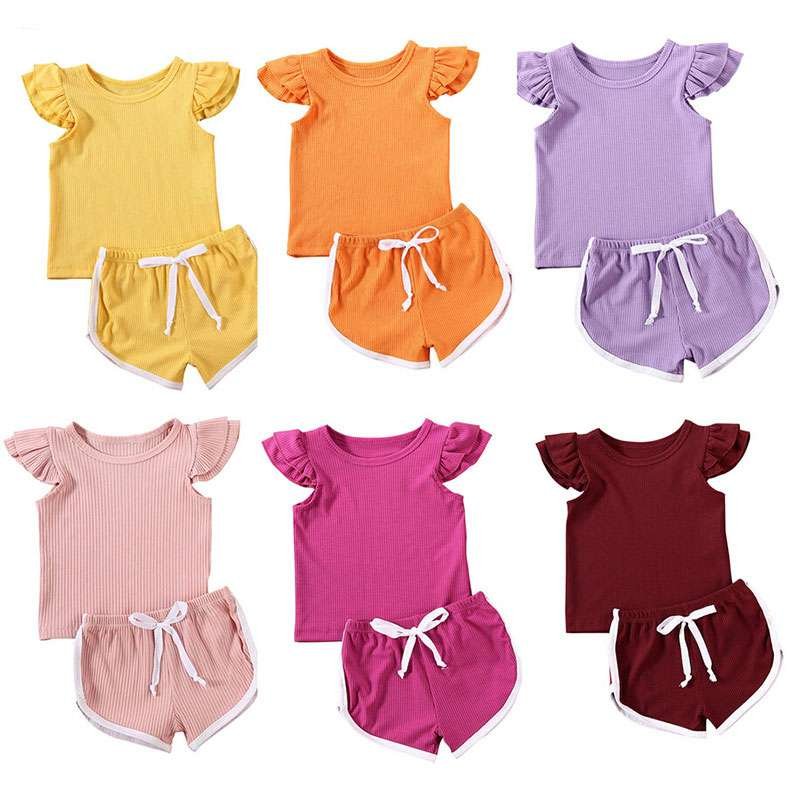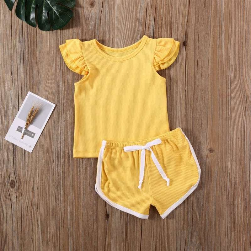 2pcs/set Girl Flying Sleeve Top Clothing Pants Set