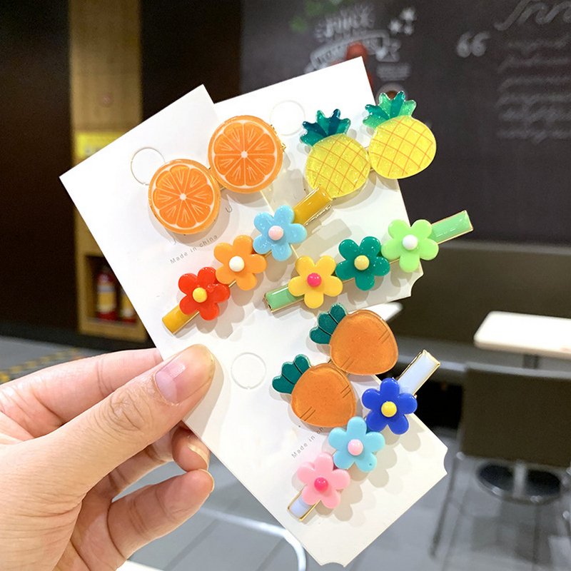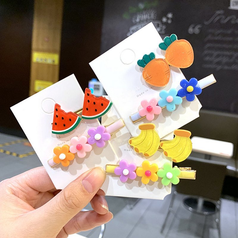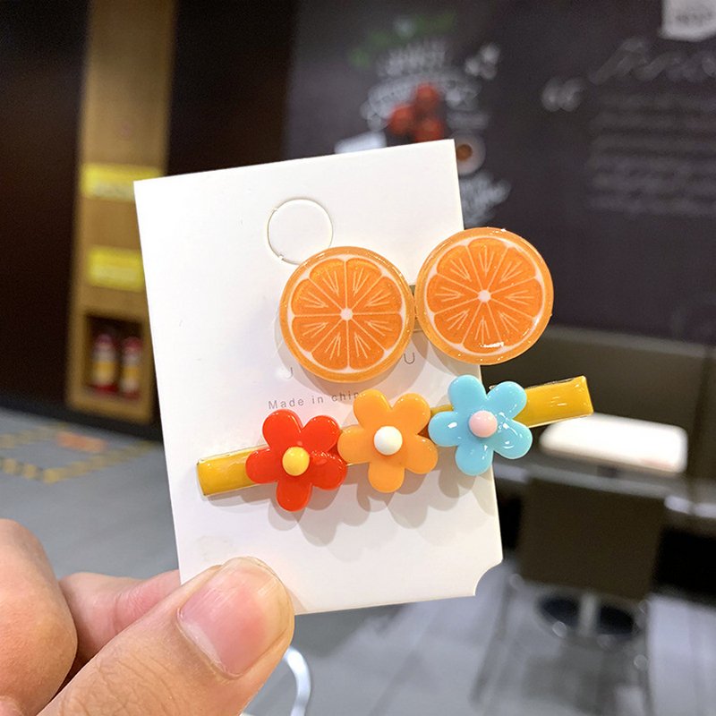 2pcs/set Girls Colorful Fruit Floret Decor Hair Clip