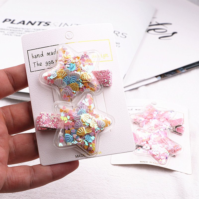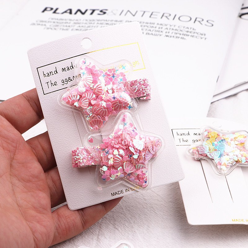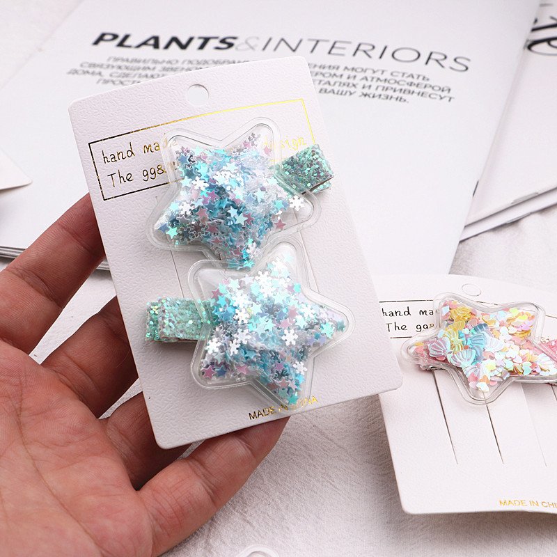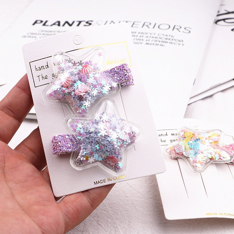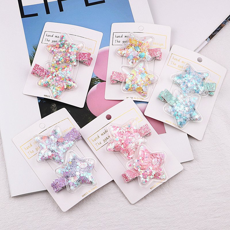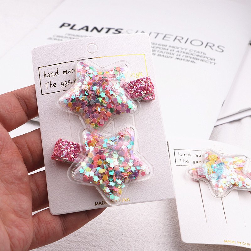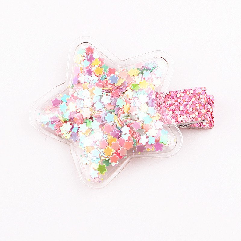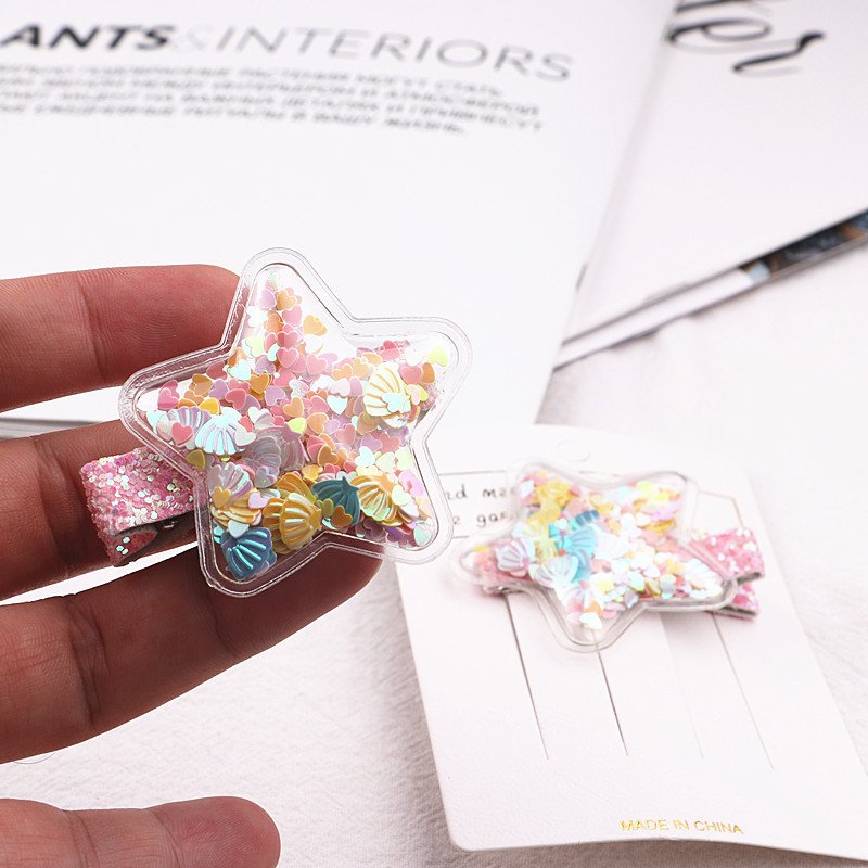 2pcs/set Girls Cute Glitter Star Quicksand Design Hairpin