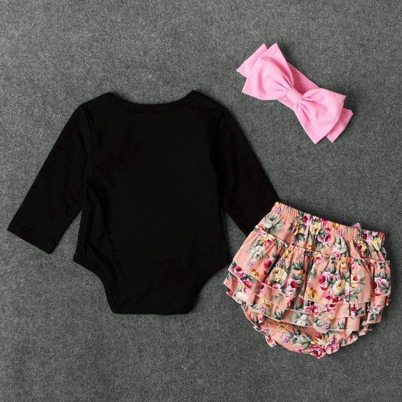 3 Pcs Set Baby Girl Letter Print Bodysuits And Floral Print Short With Headband