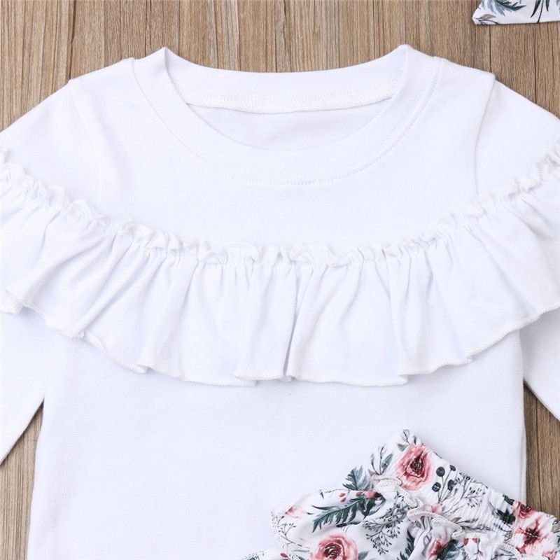 3 Pcs Set Girl White Ruffle T-Shirts And Floral Pants With Headband