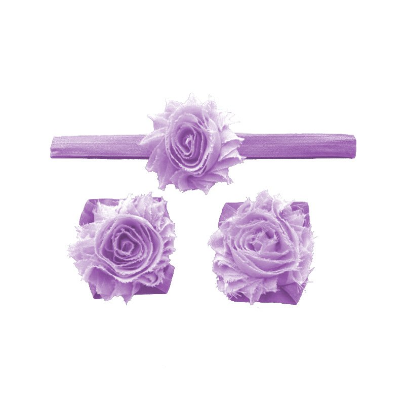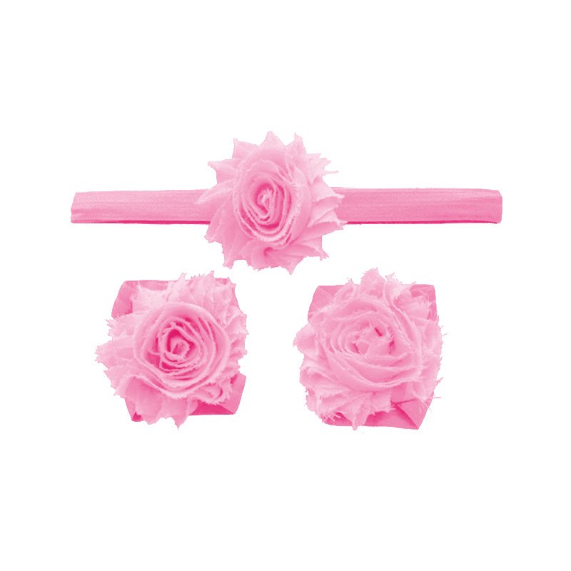 3Pcs Set Baby Girls Solid Color Chiffon Lace Flower Pretty Headbands And Barefoot Sandals
