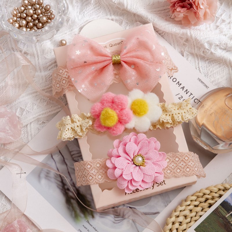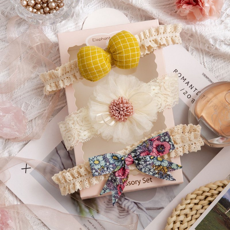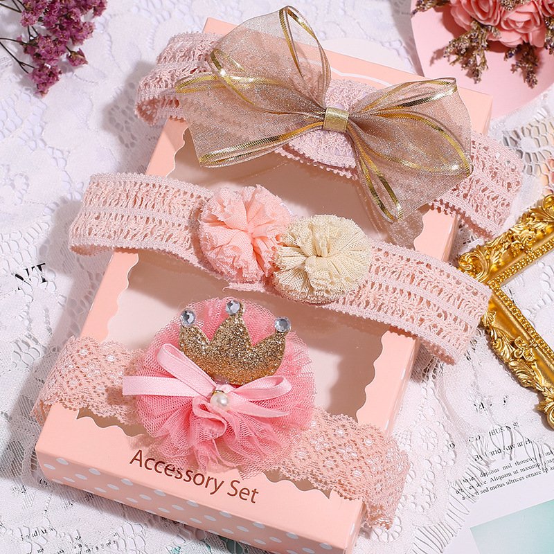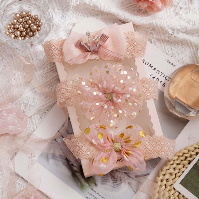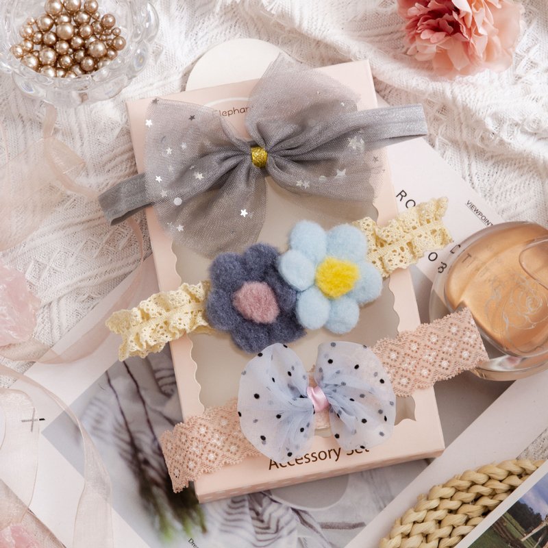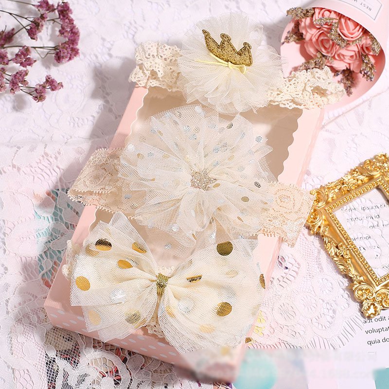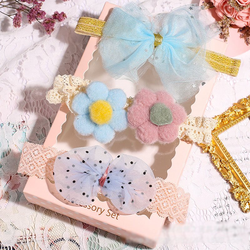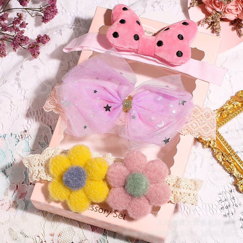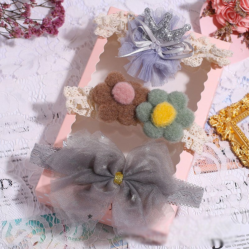 3pcs/set Girls Sweet Bowknot Flower Lace Headband