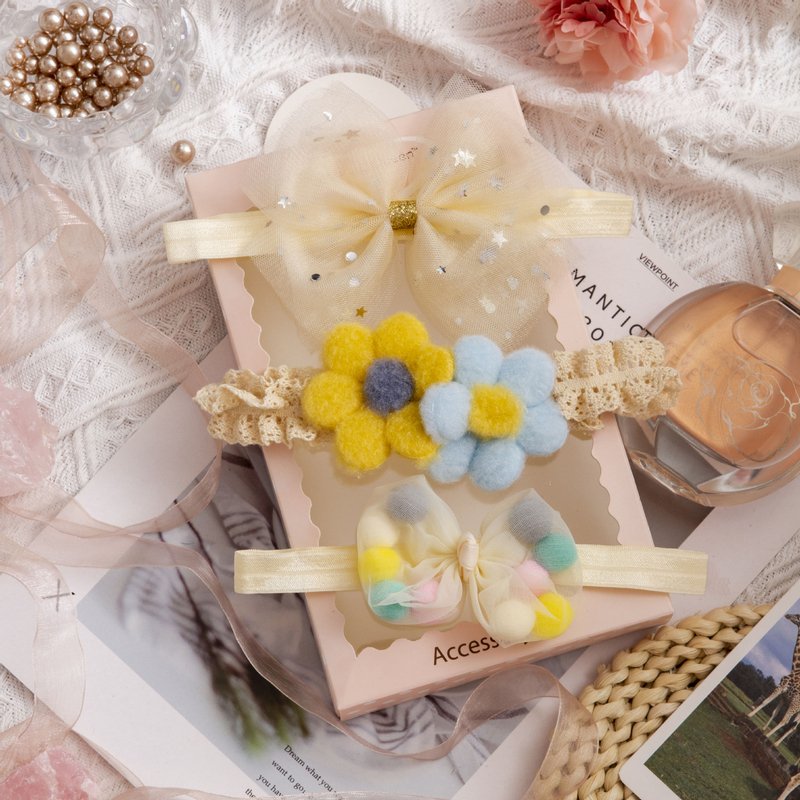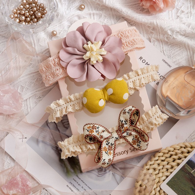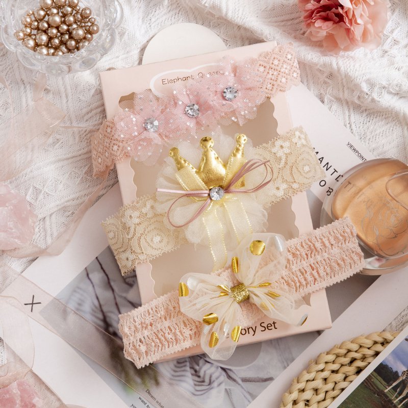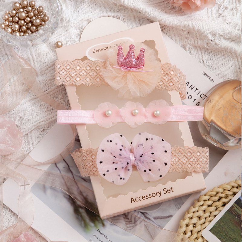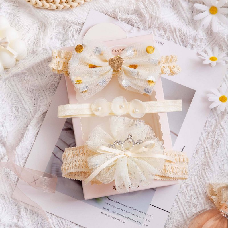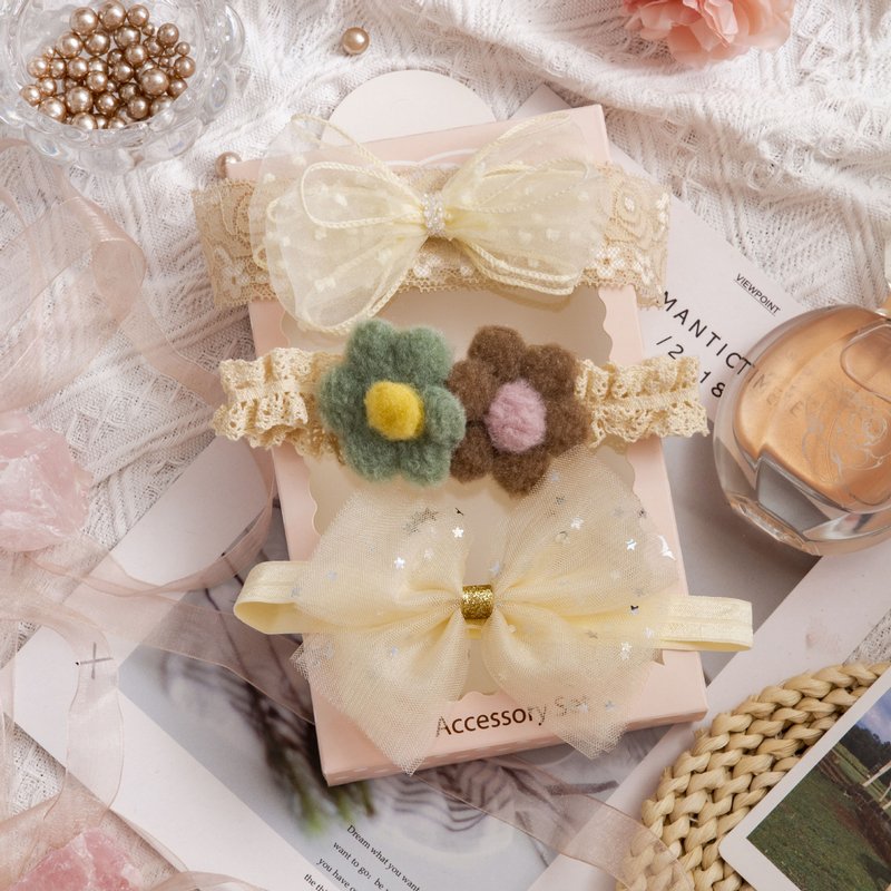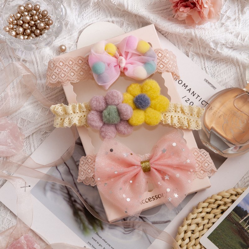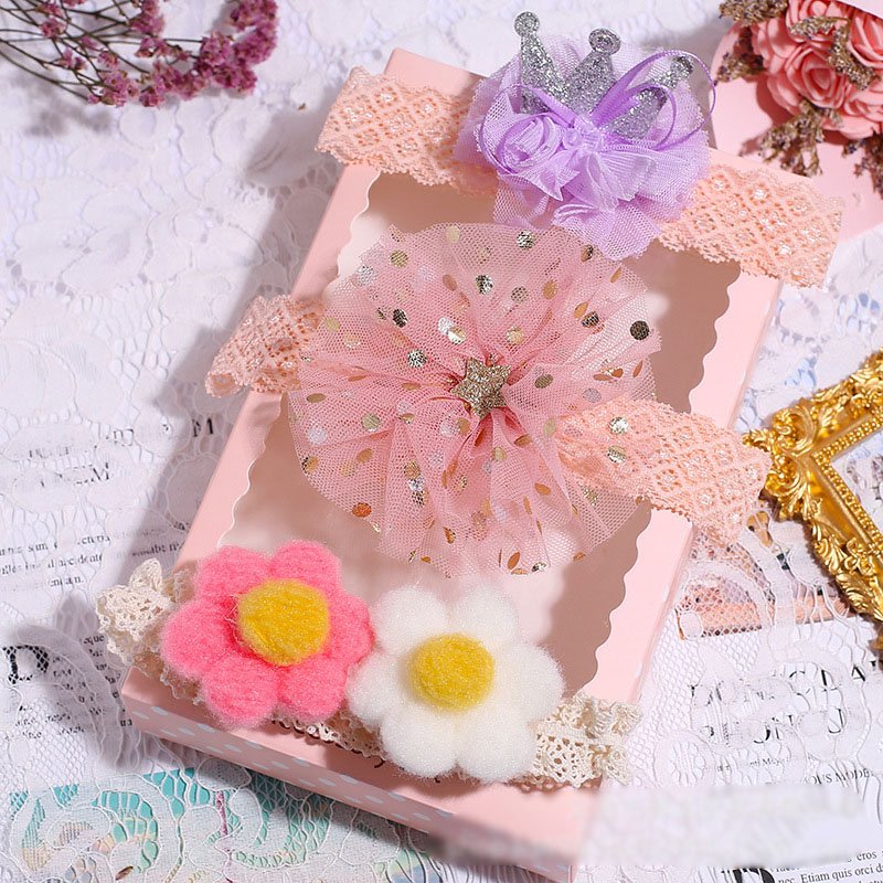 3pcs/set Girls Sweet Bowknot Flower Lace Headband