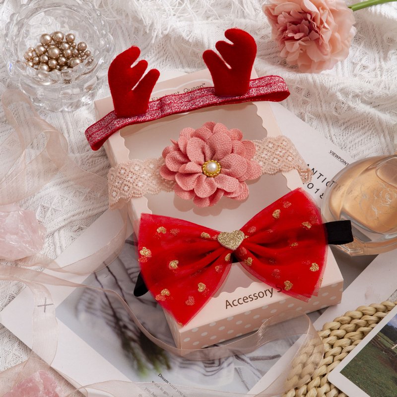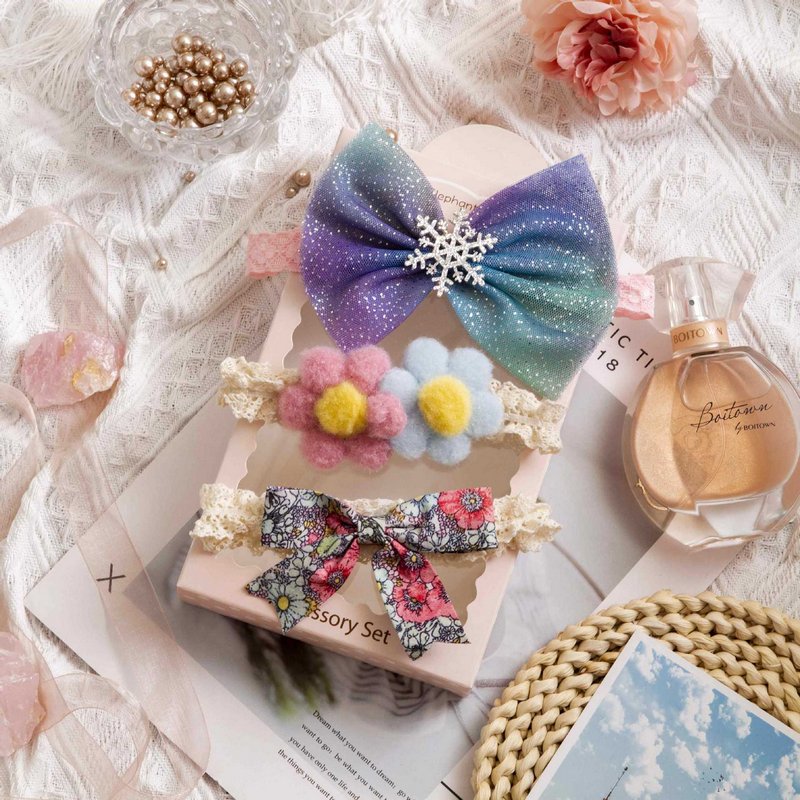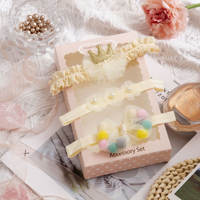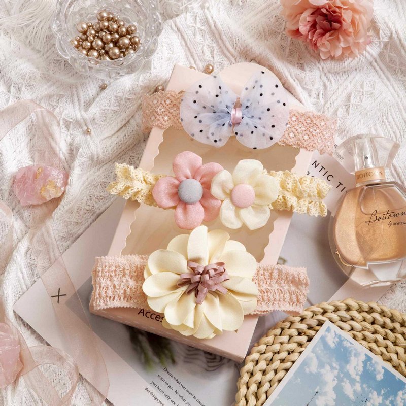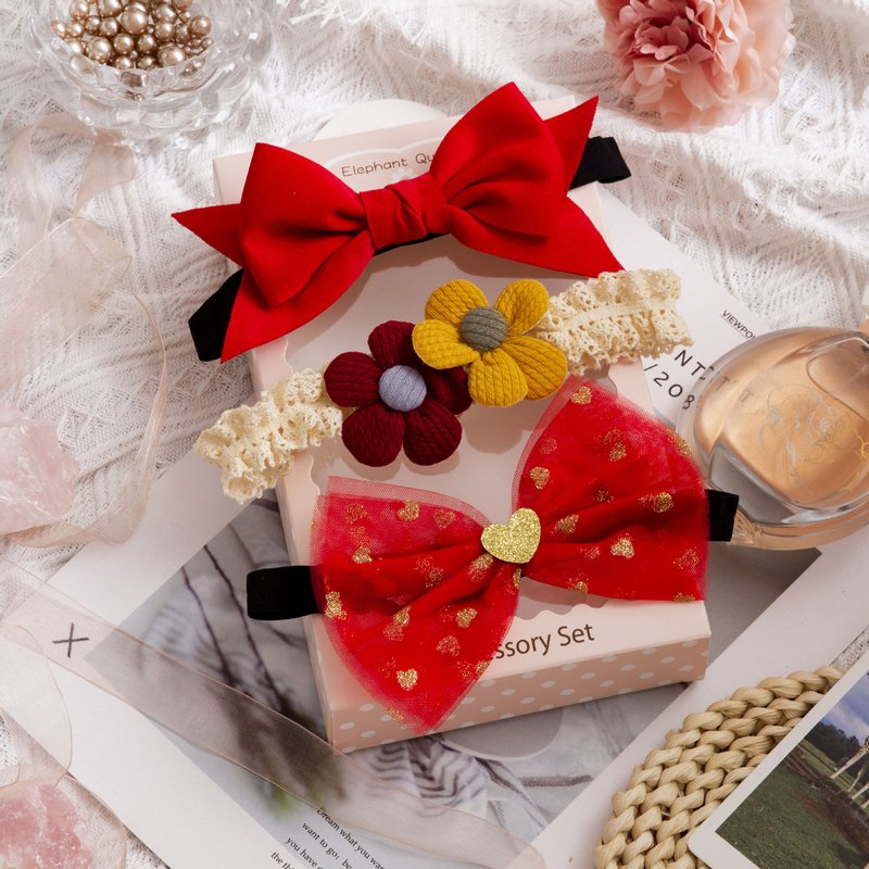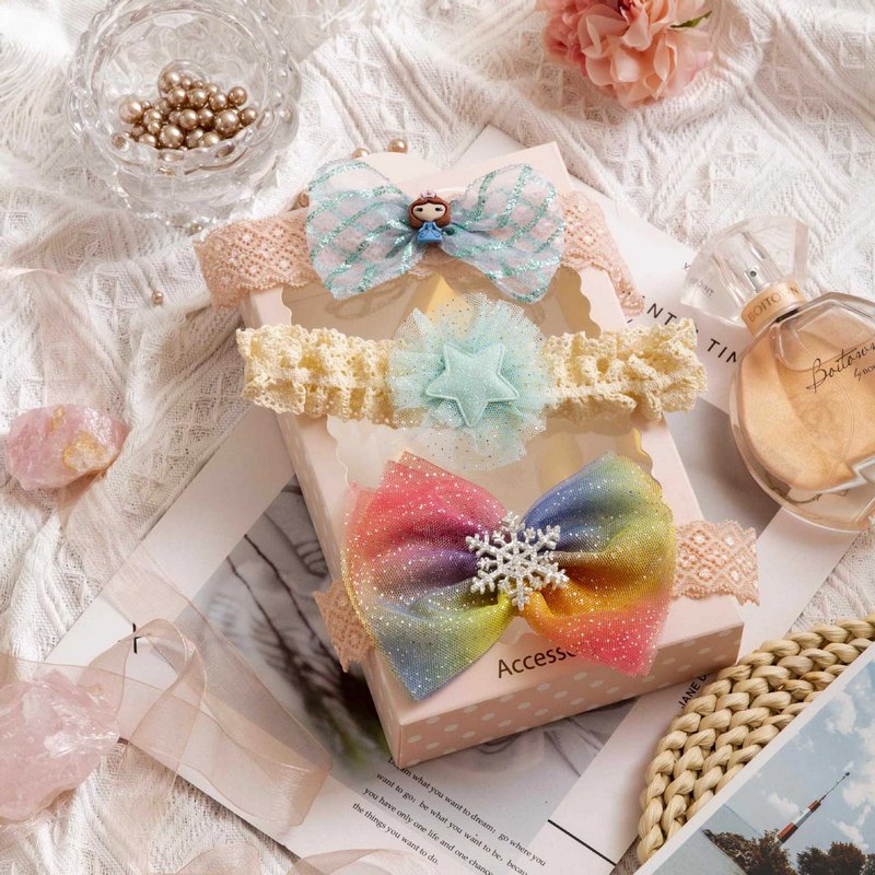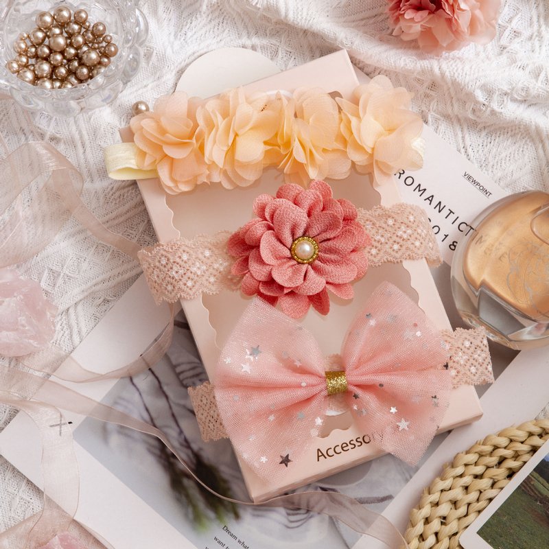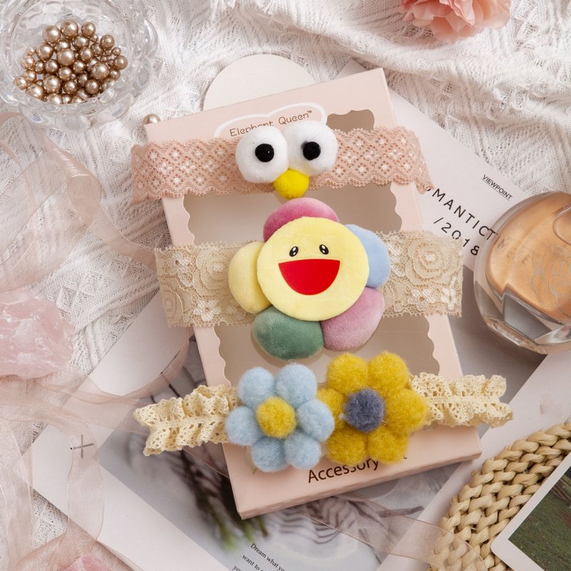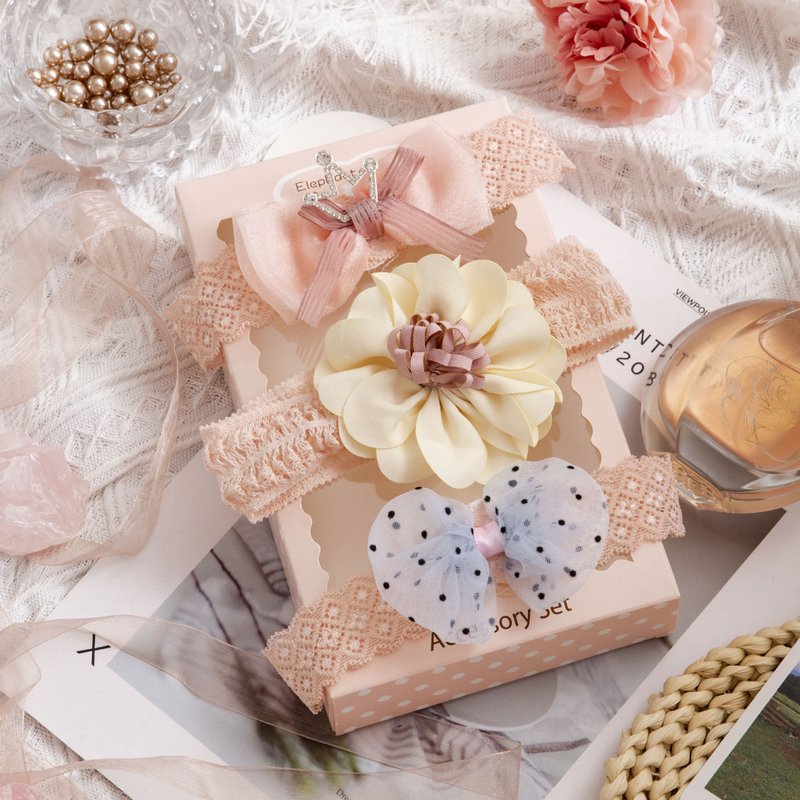 3pcs/set Girls Sweet Bowknot Flower Lace Headband