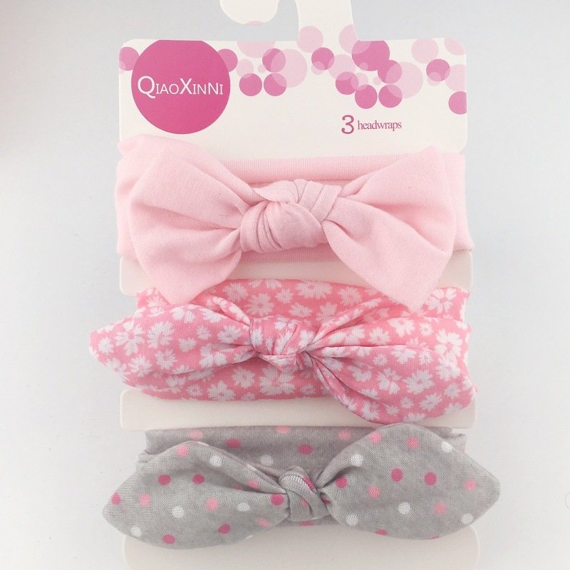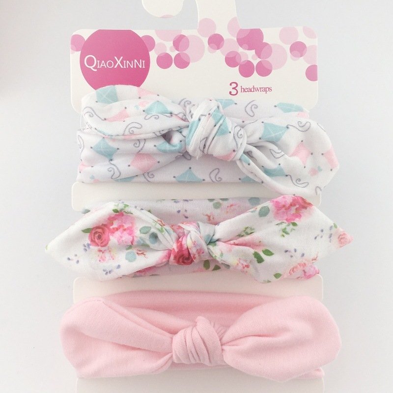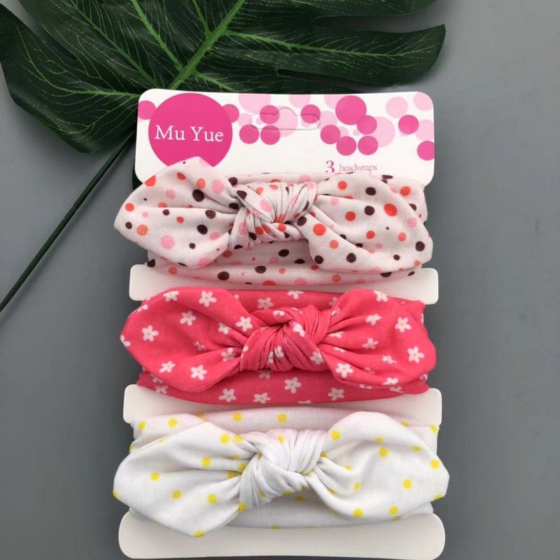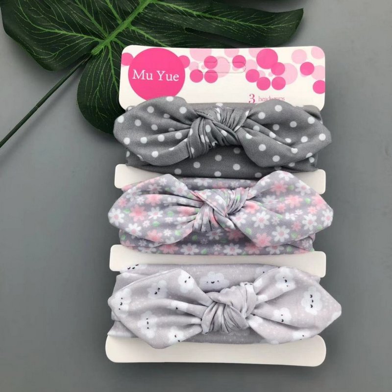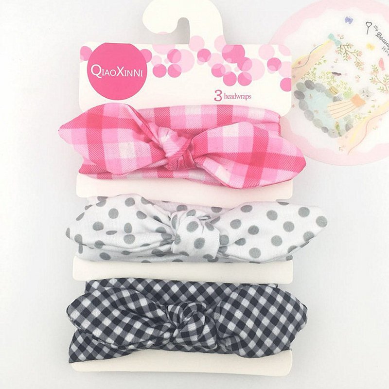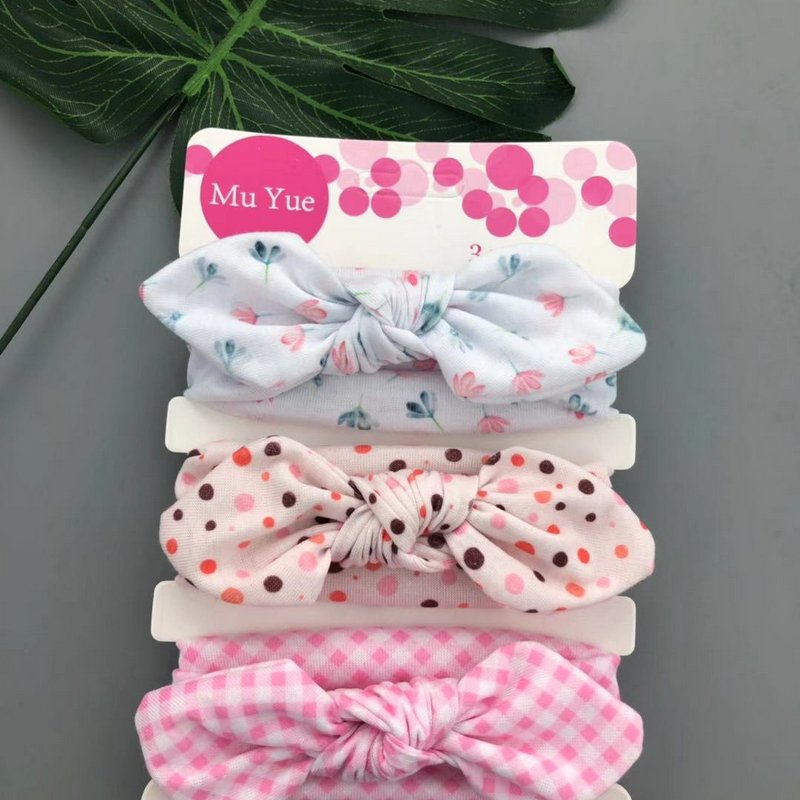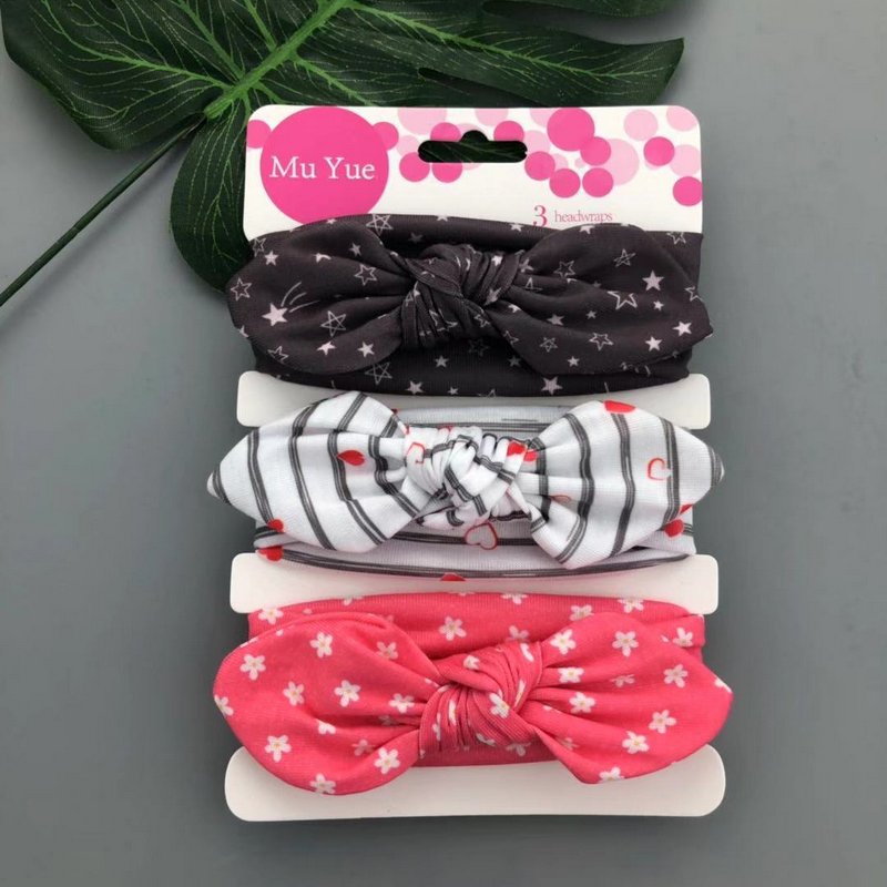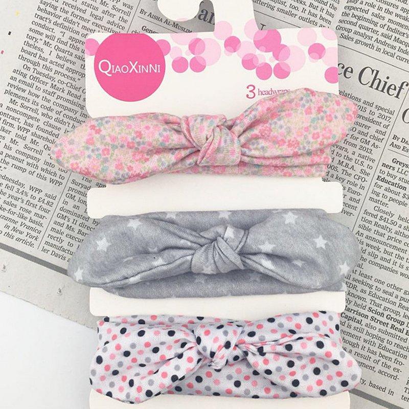 3pcs/set Kids Basic All Over Print Bow Rabbit Ear Headband