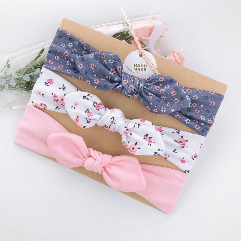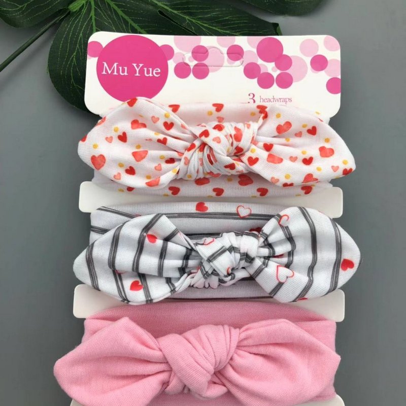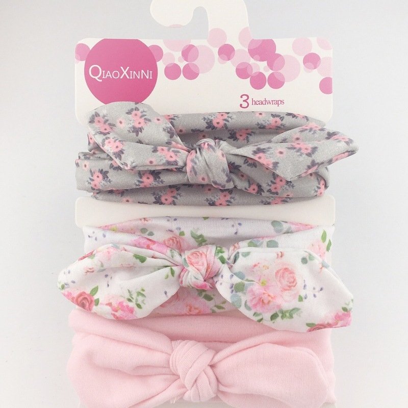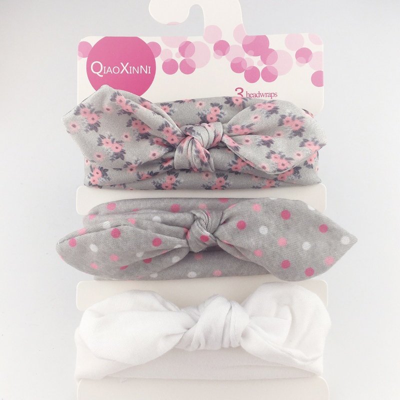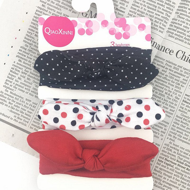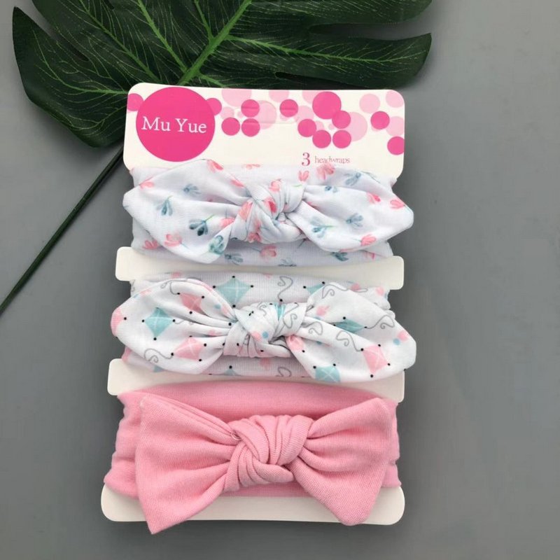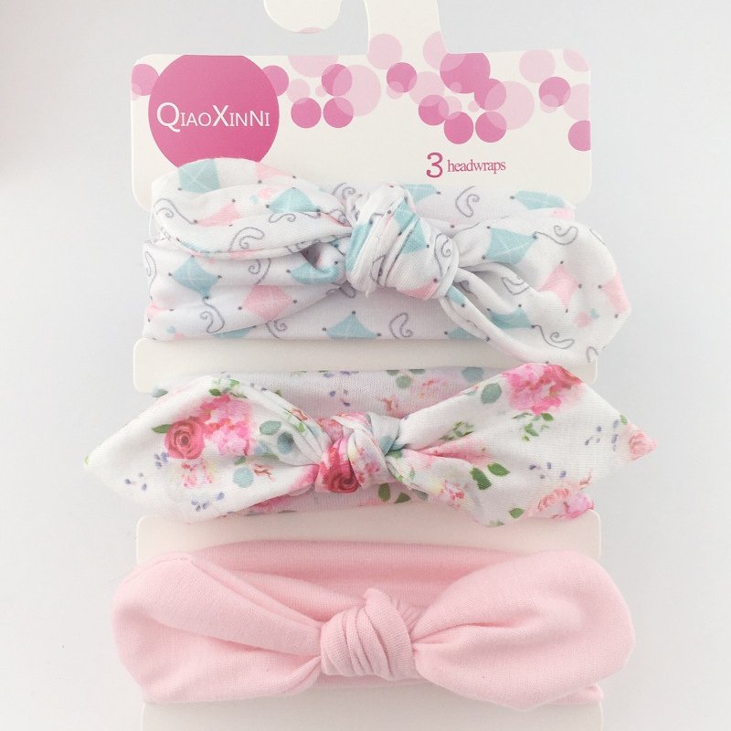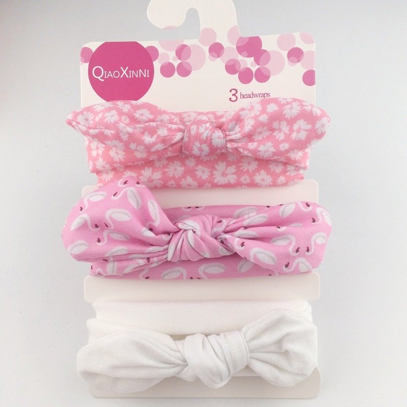 3pcs/set Kids Basic All Over Print Bow Rabbit Ear Headband