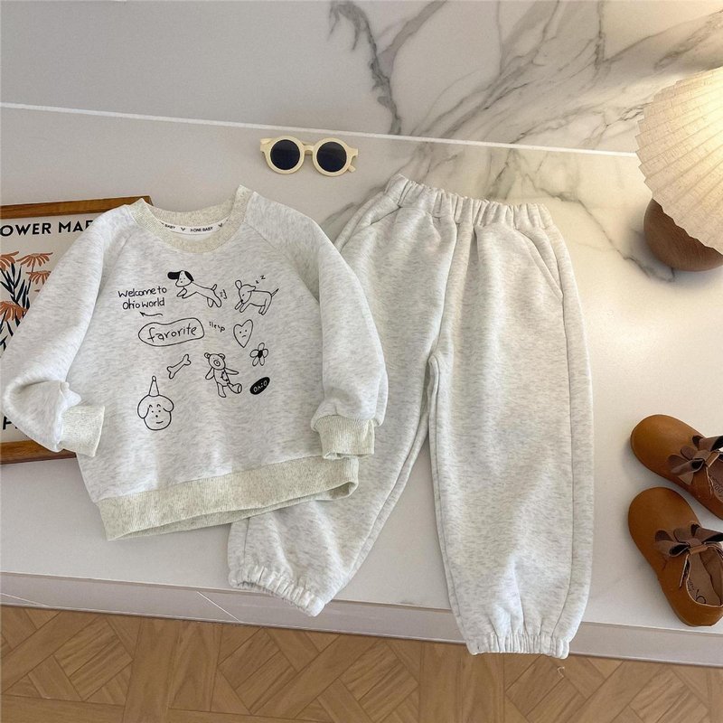 Autumn And Winter Children’s Cartoon Print Sweatshirt And Sweatpants Two-Piece Set