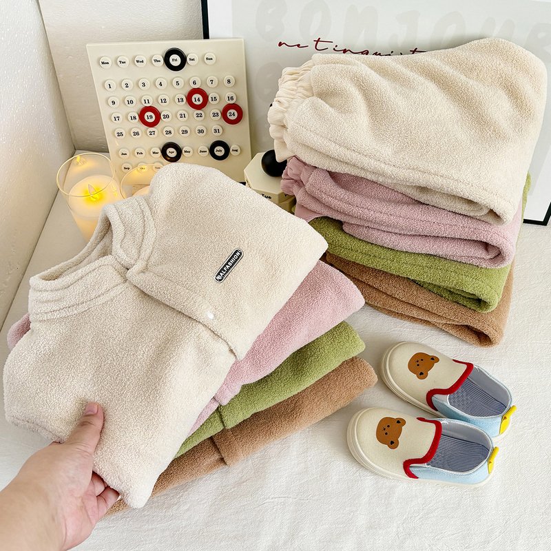 Autumn And Winter Children’s Casual Plush Top And Pants Two-Piece Set