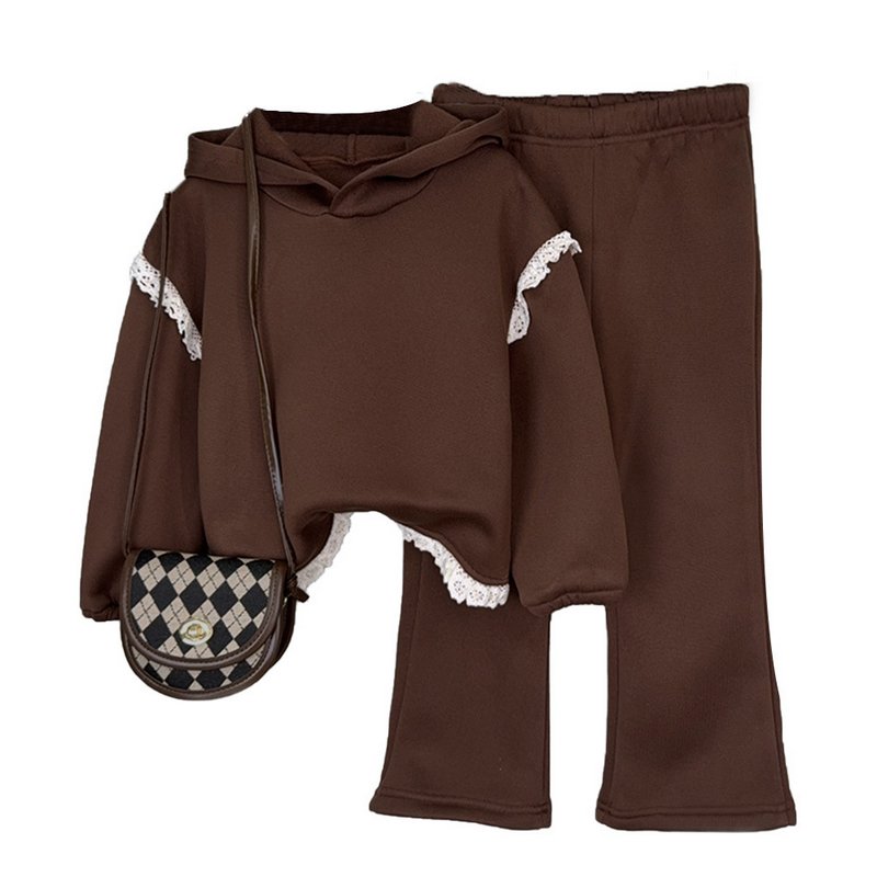 Autumn And Winter Girls Fashion Lace Hoodie And Pants Two-Piece Set