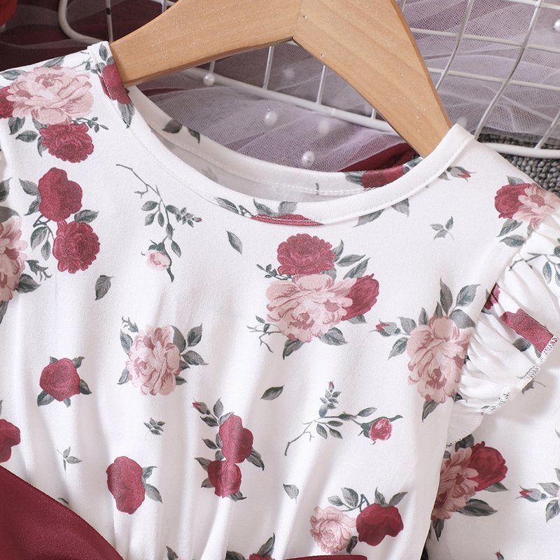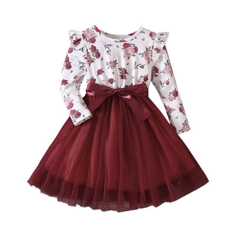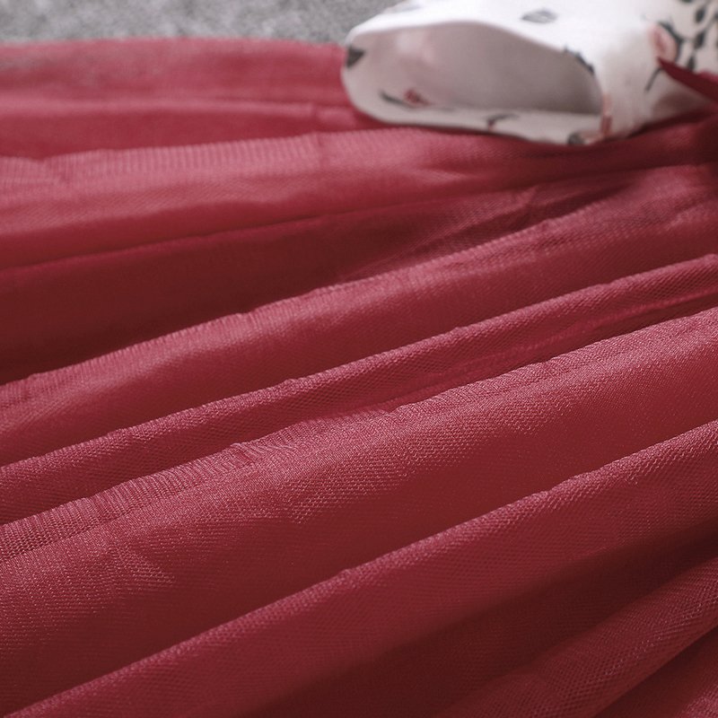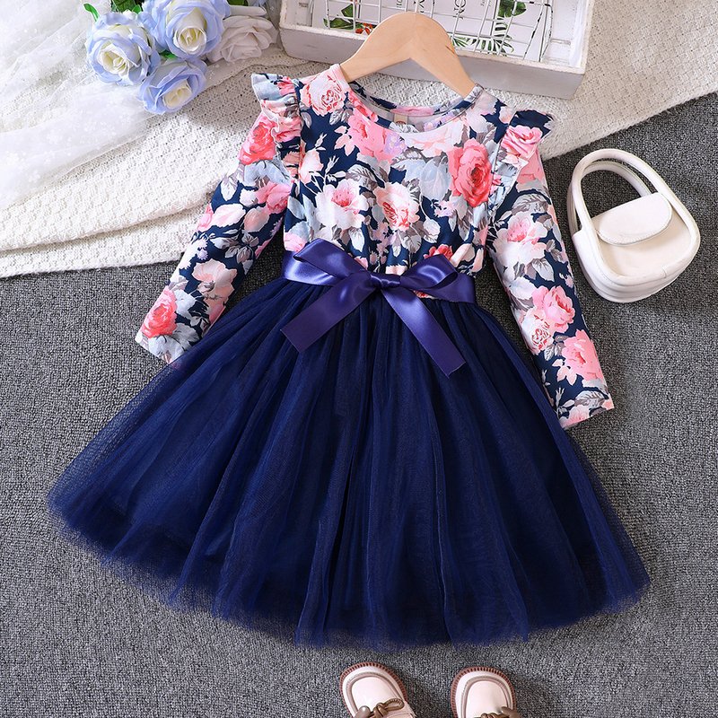Autumn And Winter Girls Fashion Long Sleeve Printed Mesh Dress
