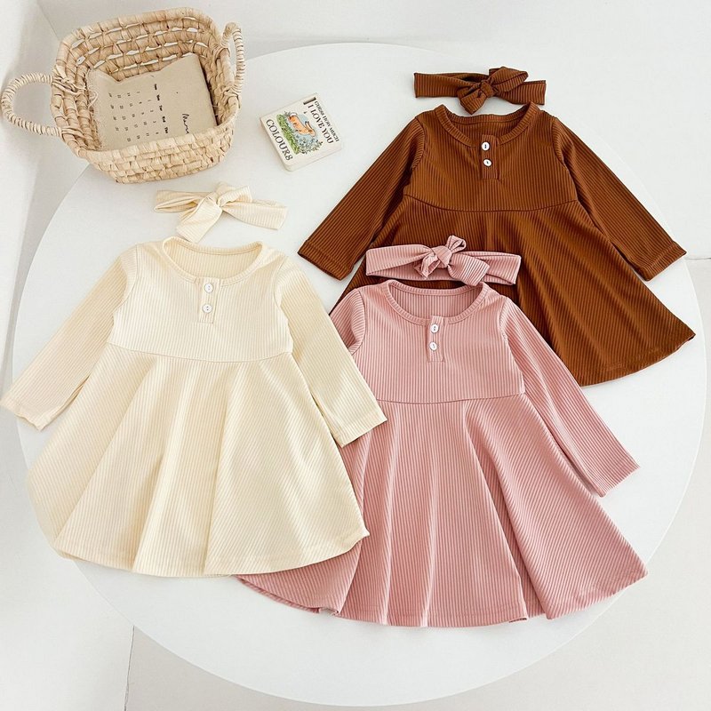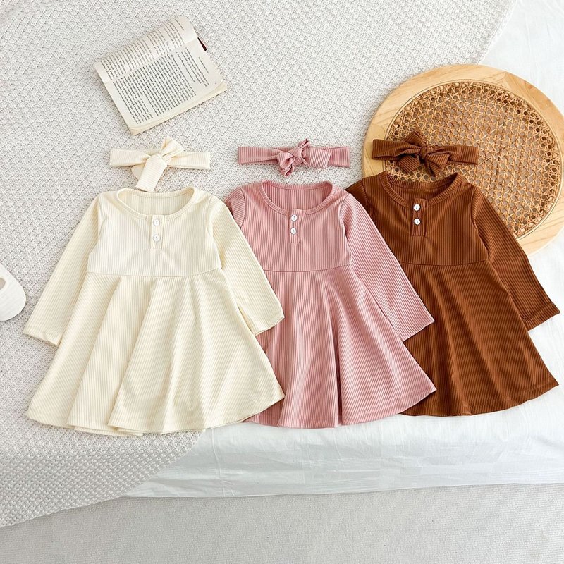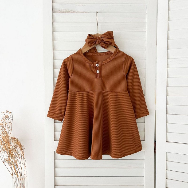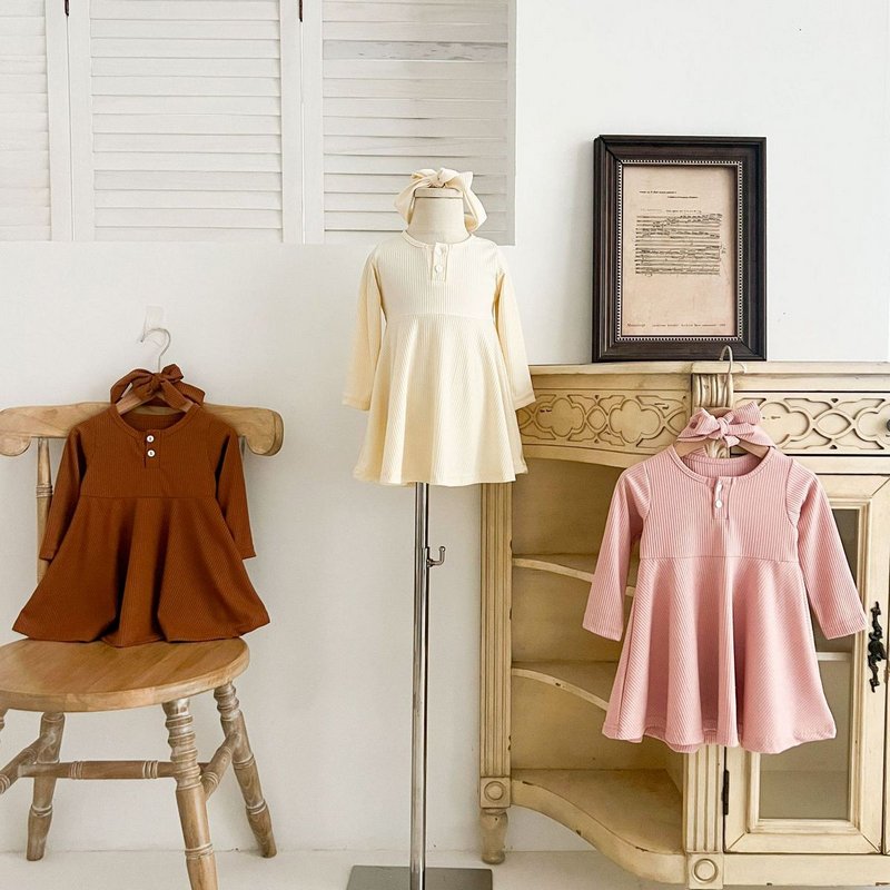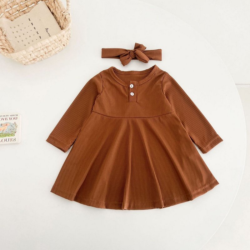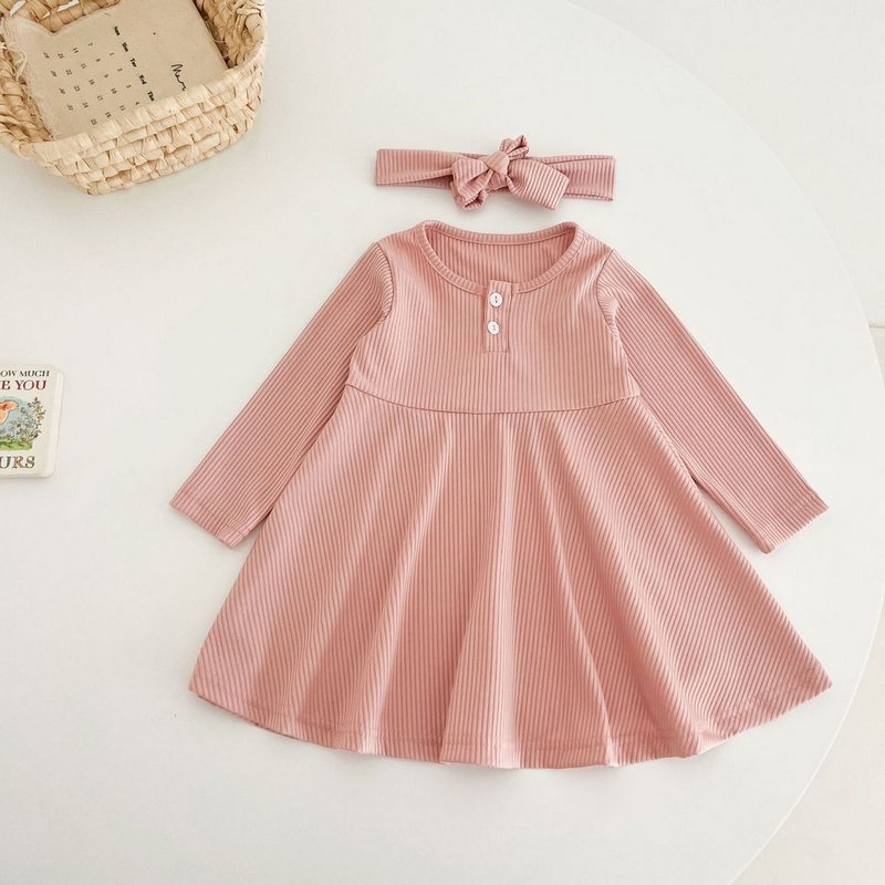 Autumn Girls Fashion Solid Color Long Sleeve Dress