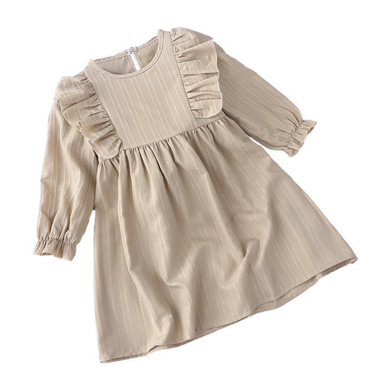 Autumn Girls Fashion Solid Color Long Sleeve Pleated Dress