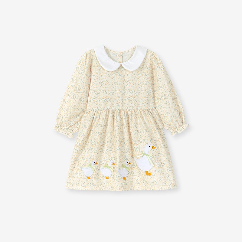 Autumn Girls Love Cartoon Lapel Long Sleeve Dress