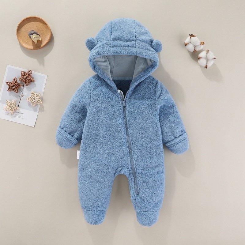 Autumn Winter Baby Cute Plush Hooded Rompers