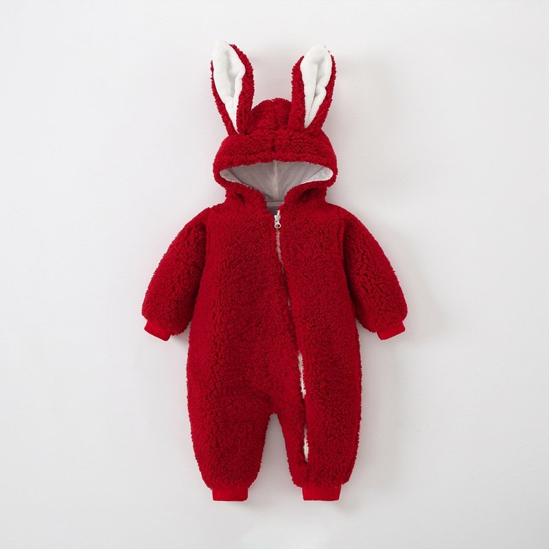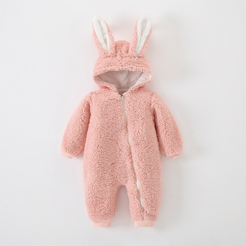 Autumn Winter Baby Cute Plush Solid Color Hooded Rompers
