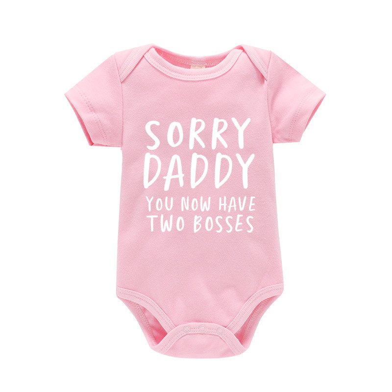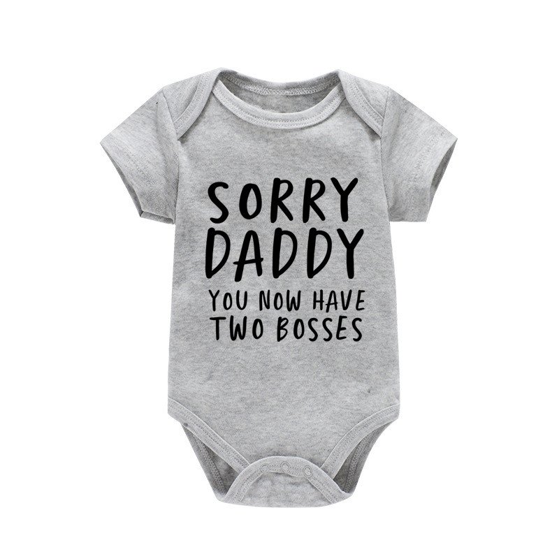 Baby Basic Letter Pattern Round Neck Short Sleeve Romper