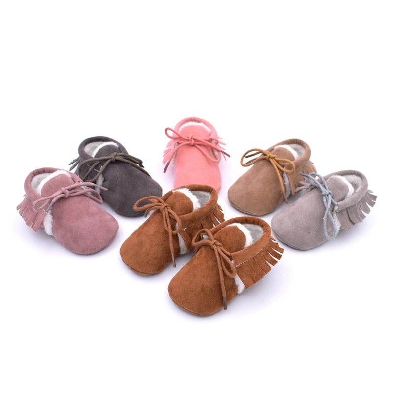 Baby Basic Solid Color Tassel Frosted Soft Bottom Plush First Walkers