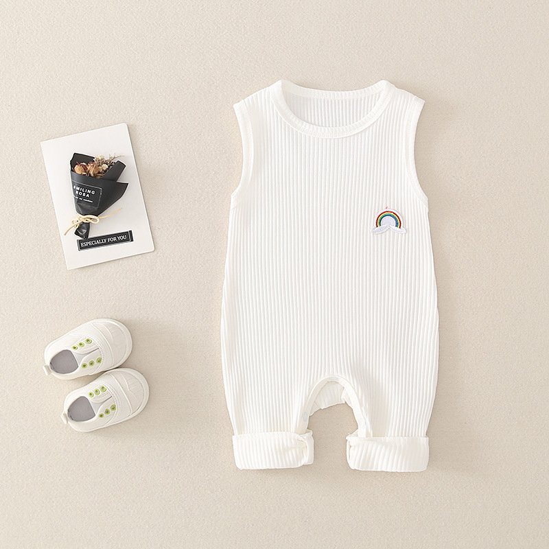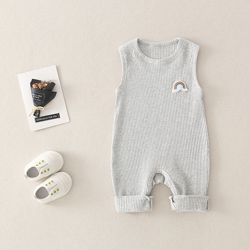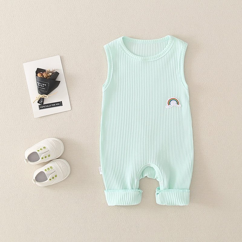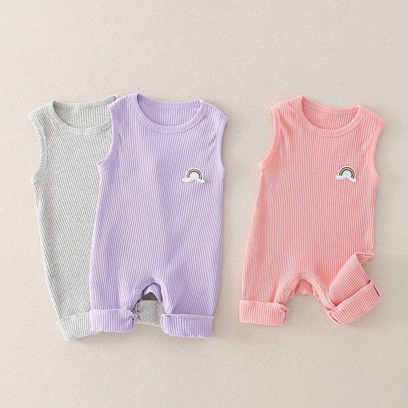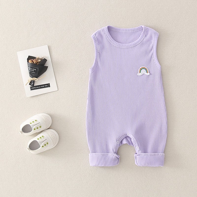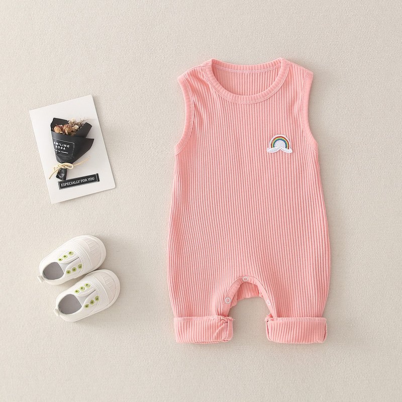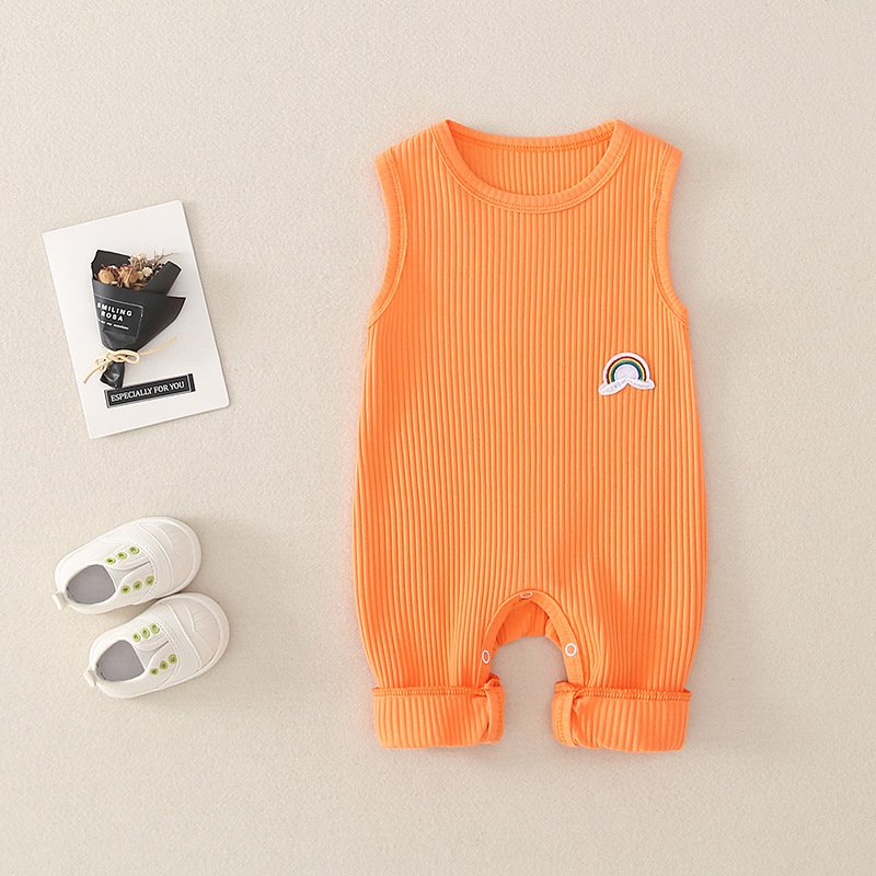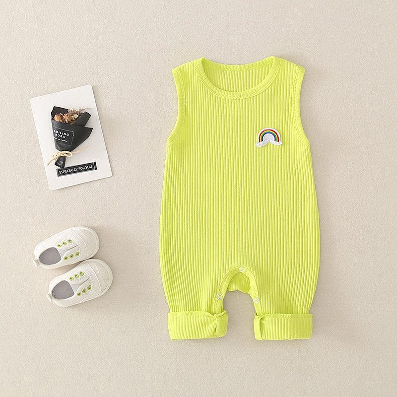 Baby Basic Solor Color Round Neck Sleeveless Rainbow Design Romper