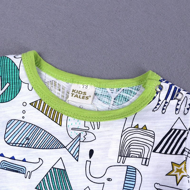 Baby Bodysuit Slub Cotton Short Sleeve Animal Print Romper