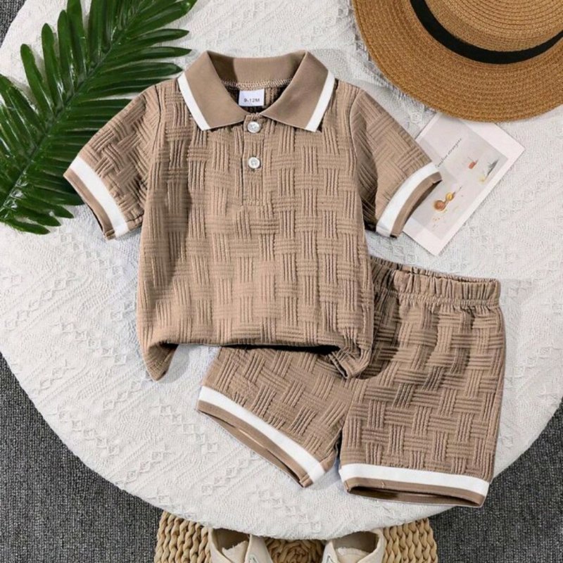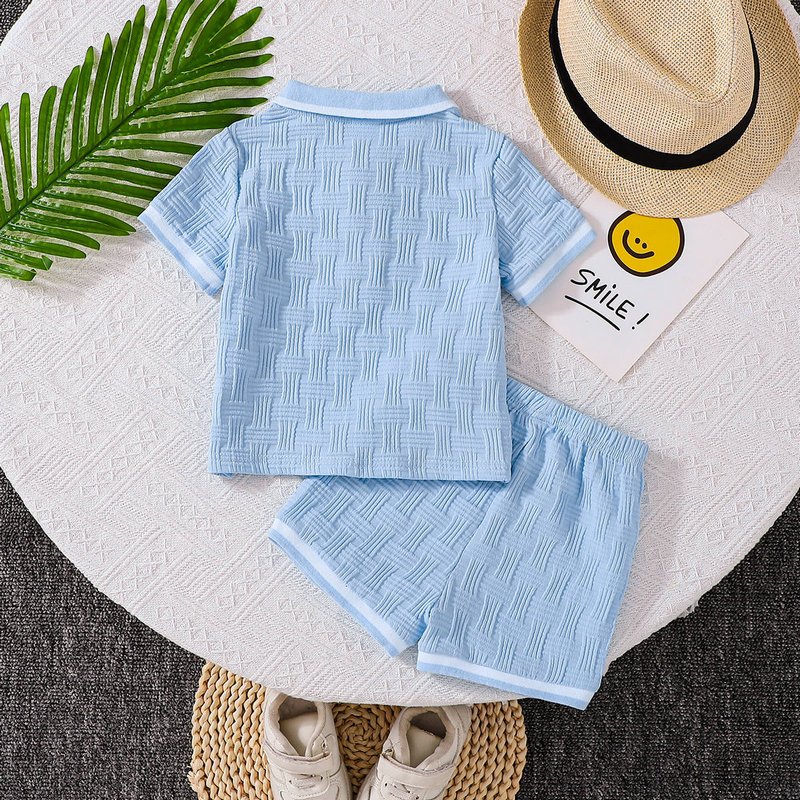 Baby Boy Fashion Simple Solid Color Jacquard Lapel Short Sleeve Top Loose Shorts Two-Piece Set