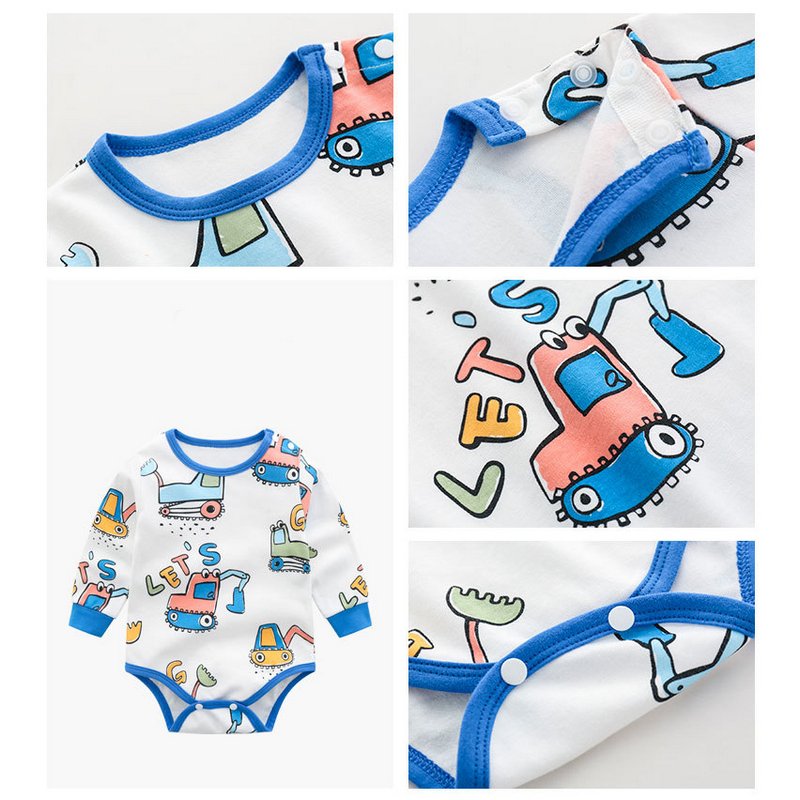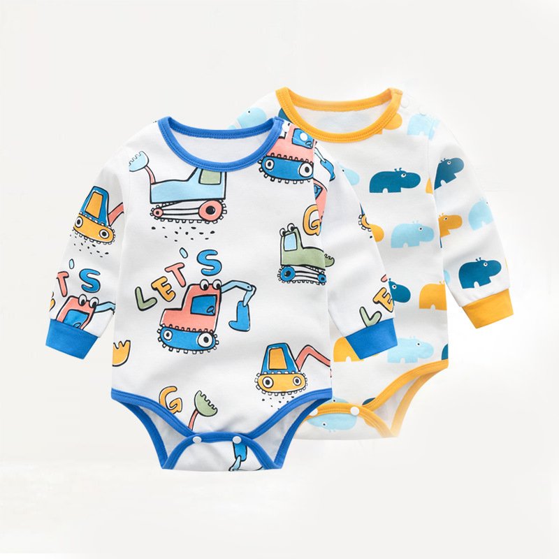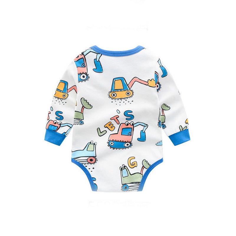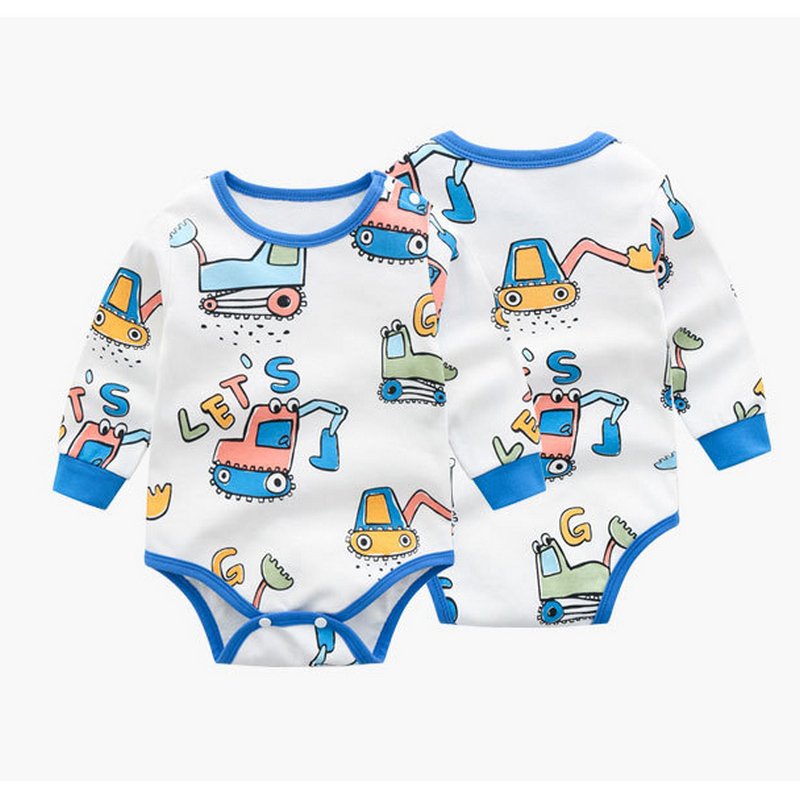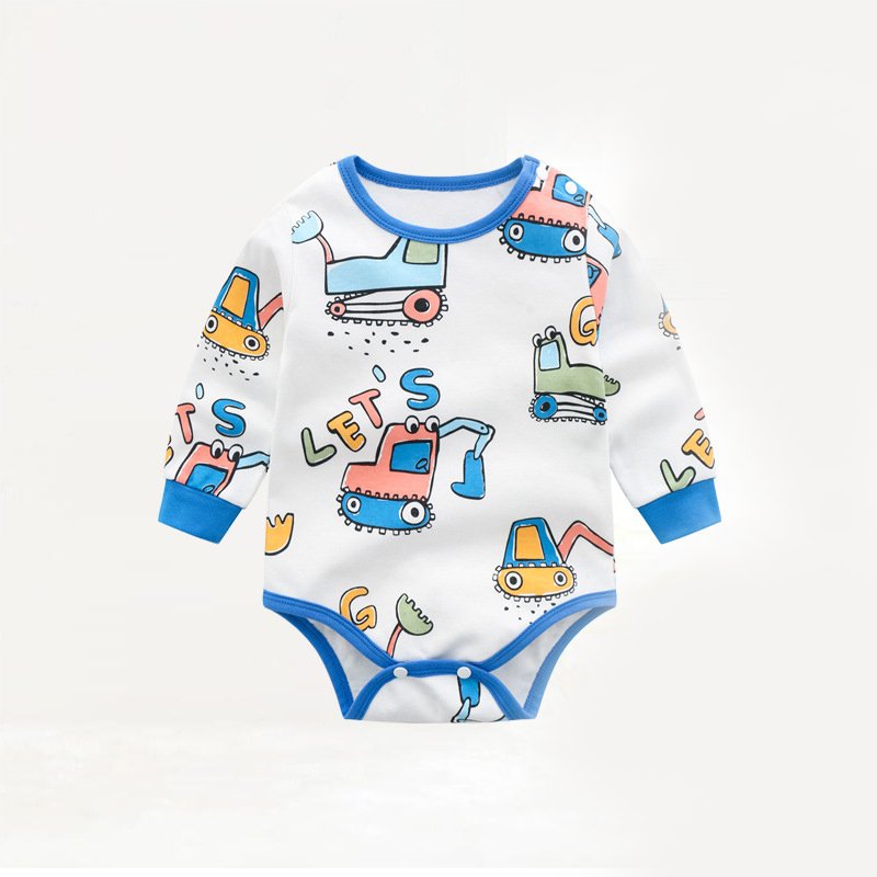Baby Boy Hippo Excavator Printed Long-sleeved One-piece Bodysuit