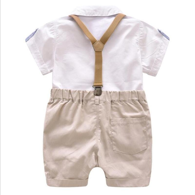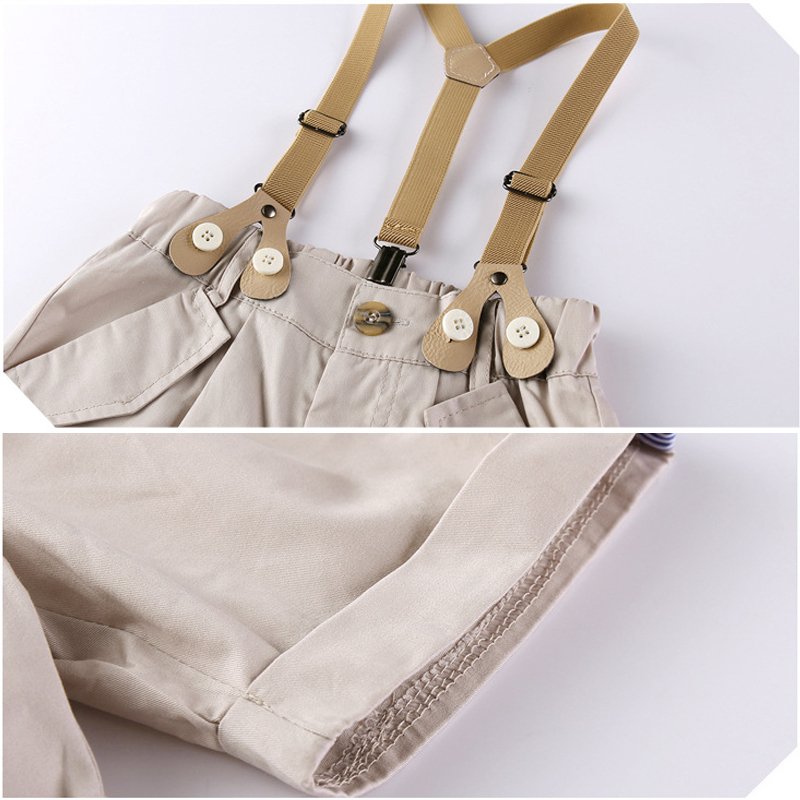 Baby Boys Basic Lapel Short Sleeve Single-breasted Bow Shirt And Straps Shorts Set