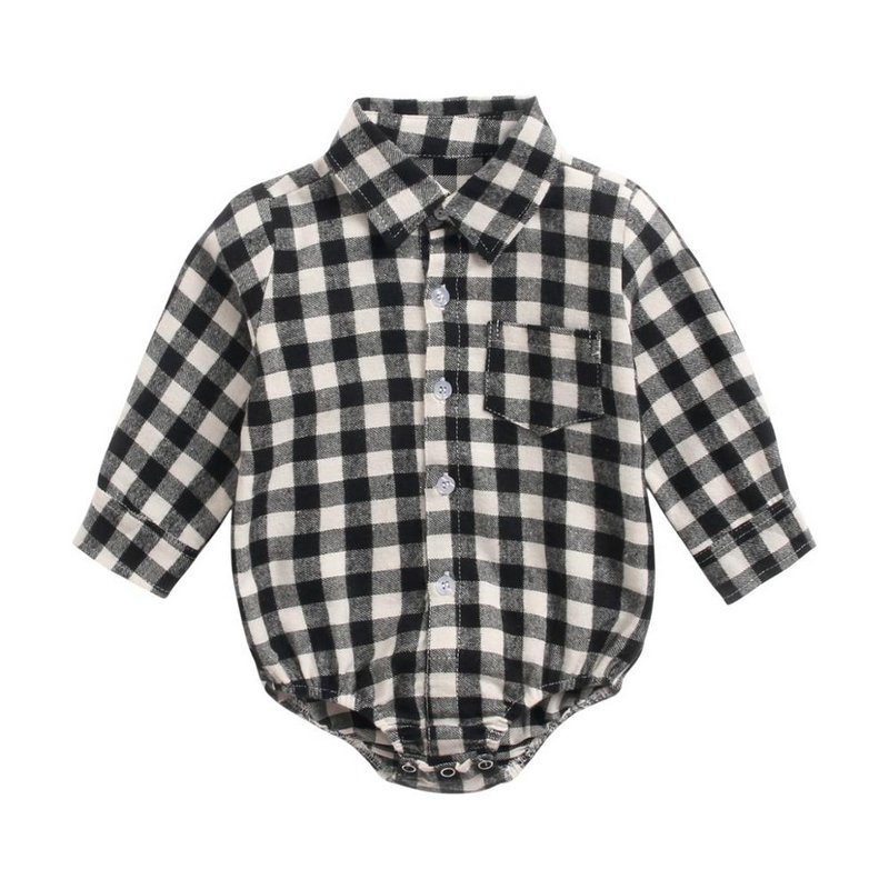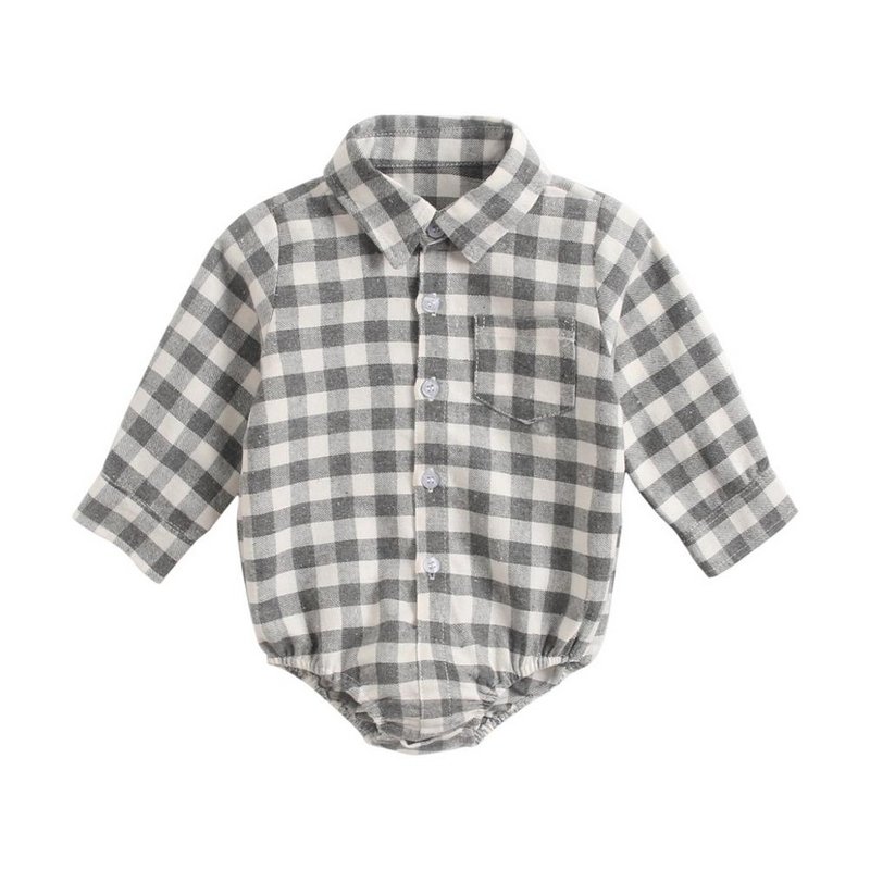 Baby Boys Basic Lapel Single-breasted Lapel Long Sleeve Romper