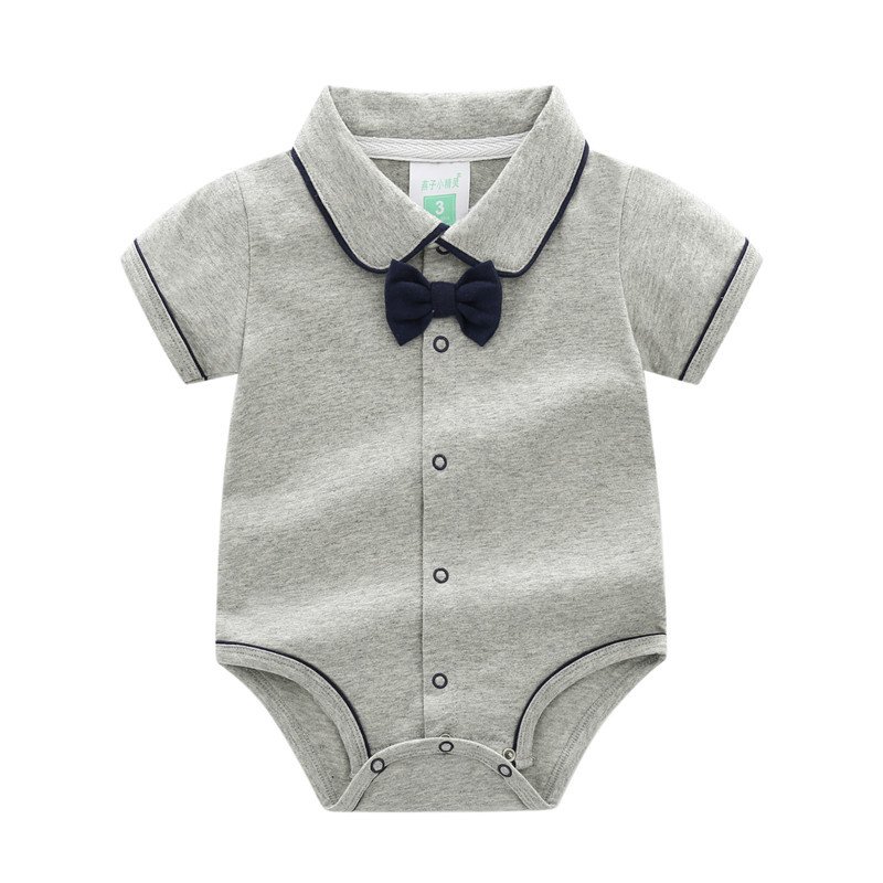 Baby Boys Basic Lapel Single-breasted Short Sleeve Romper