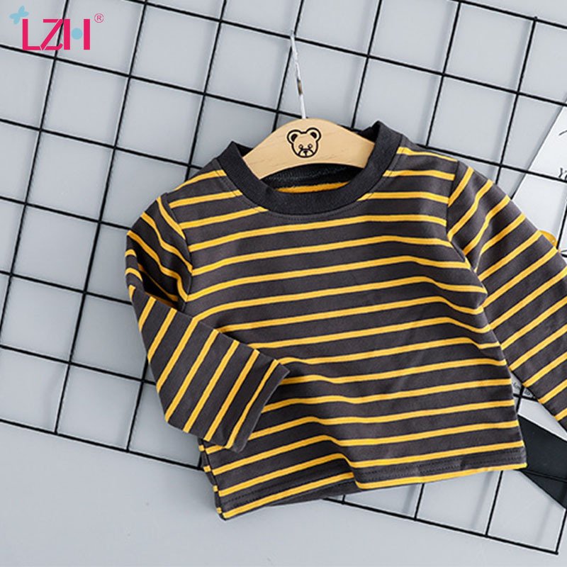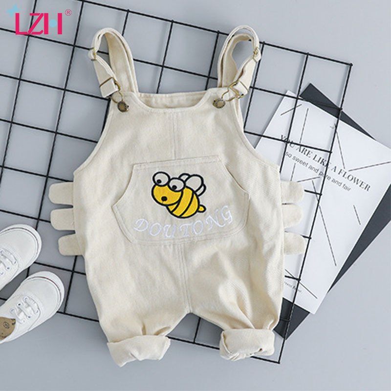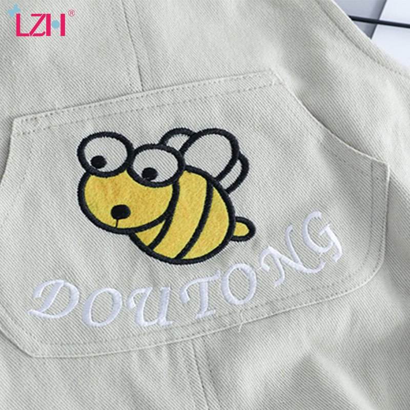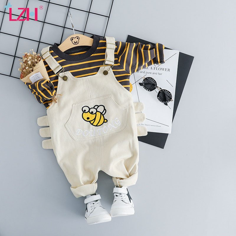 Baby Boys Basic Round Neck Long Sleeve Striped Casual T-Shirt And Cartoon Bee Pattern Denim Suspender Trousers Set