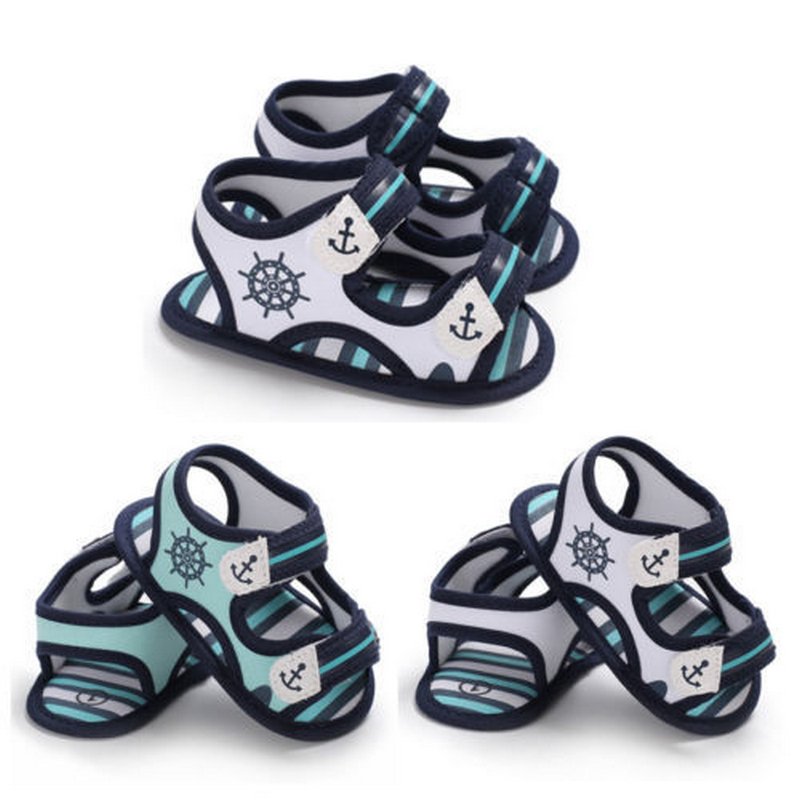 Baby Boys Basic Striped Color Blocking Canvas Velcro Soft Bottom Sandals